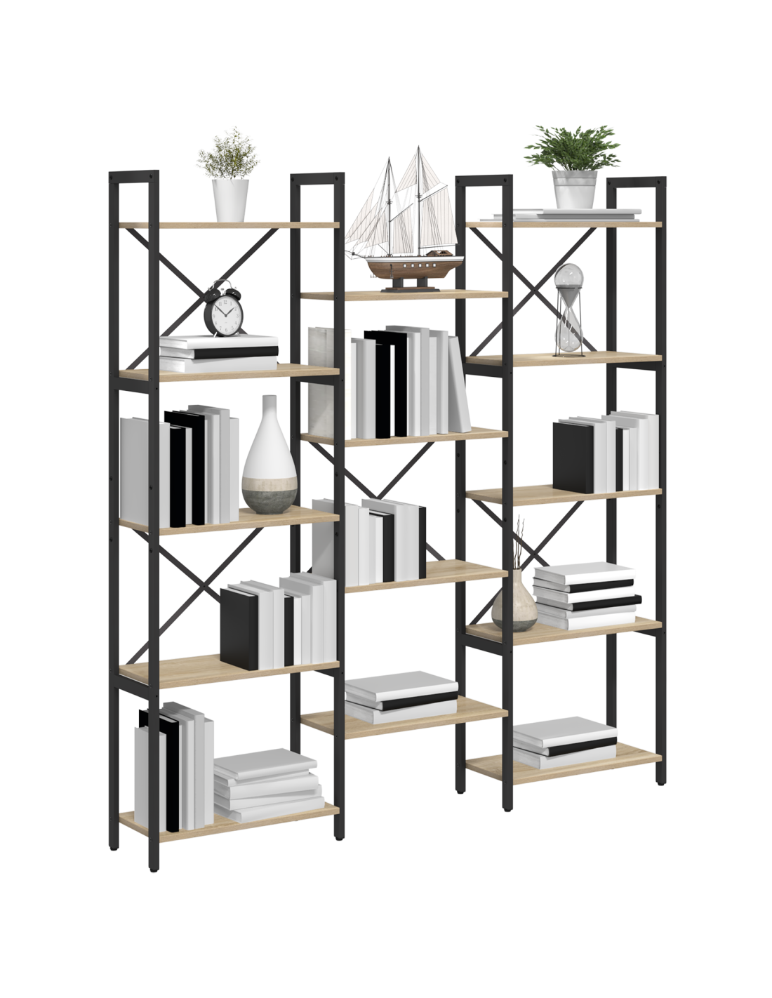 - Costruzione in acciaio: Famoso per la sua forza, il telaio in acciaio offre un supporto eccezionale, mantenendo la libreria stabile in qualsiasi stanza. Il design industriale aggiunge stile e rinforza la struttura. La finitura nera si abbina bene agli ambienti moderni, garantendo supporto affidabile per carichi pesanti.