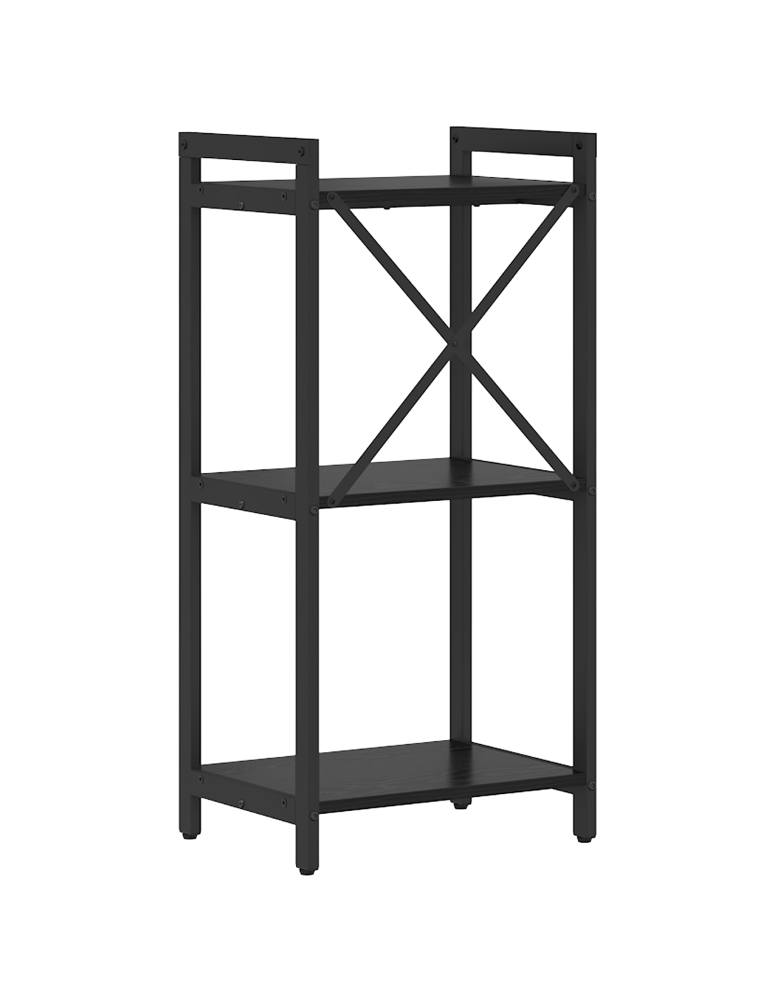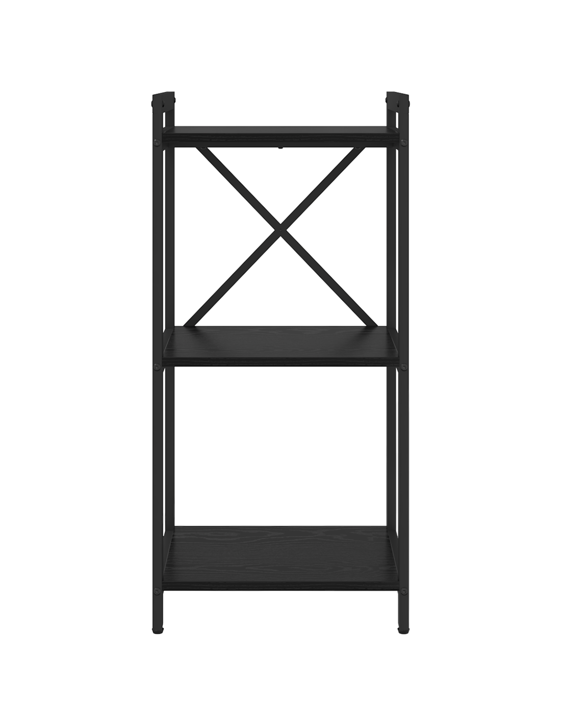 - Telaio in Acciaio Nero: Il telaio è di acciaio robusto con finitura nera, combina resistenza e bellezza. La sua solida costruzione supporta molti oggetti, assicurando stabilità.