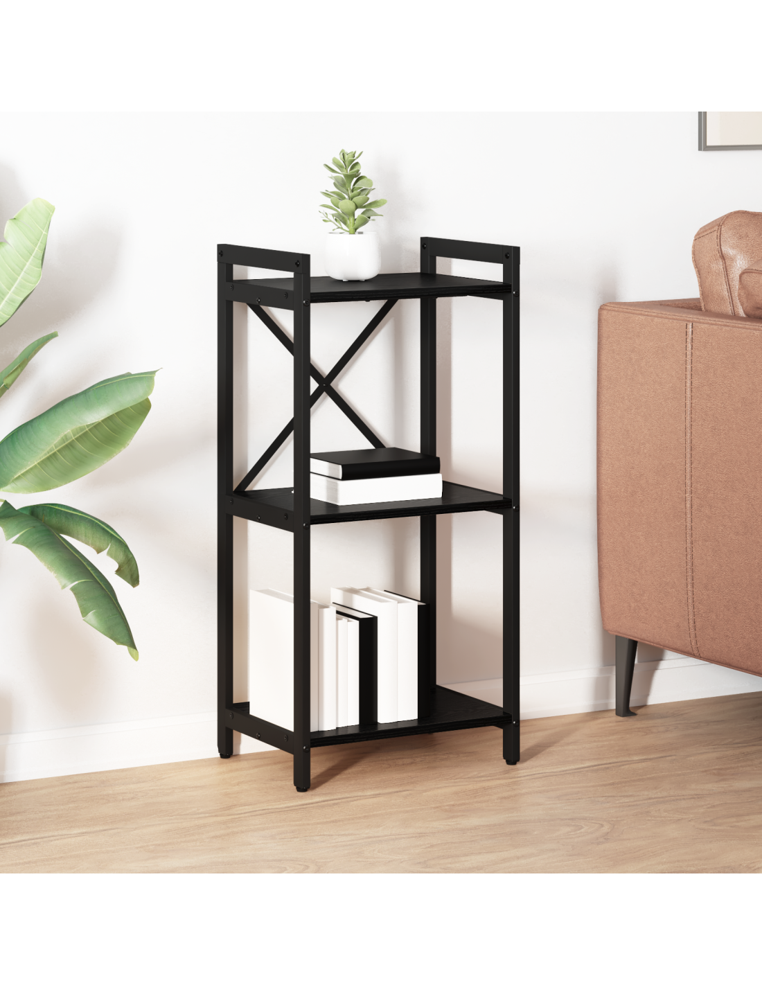 - Design a Ripiani Multipli: Con più livelli, la libreria offre spazio per organizzare e mostrare i tuoi libri preferiti. I ripiani distanziati ricevono libri di diverse dimensioni e permettono uno styling creativo.