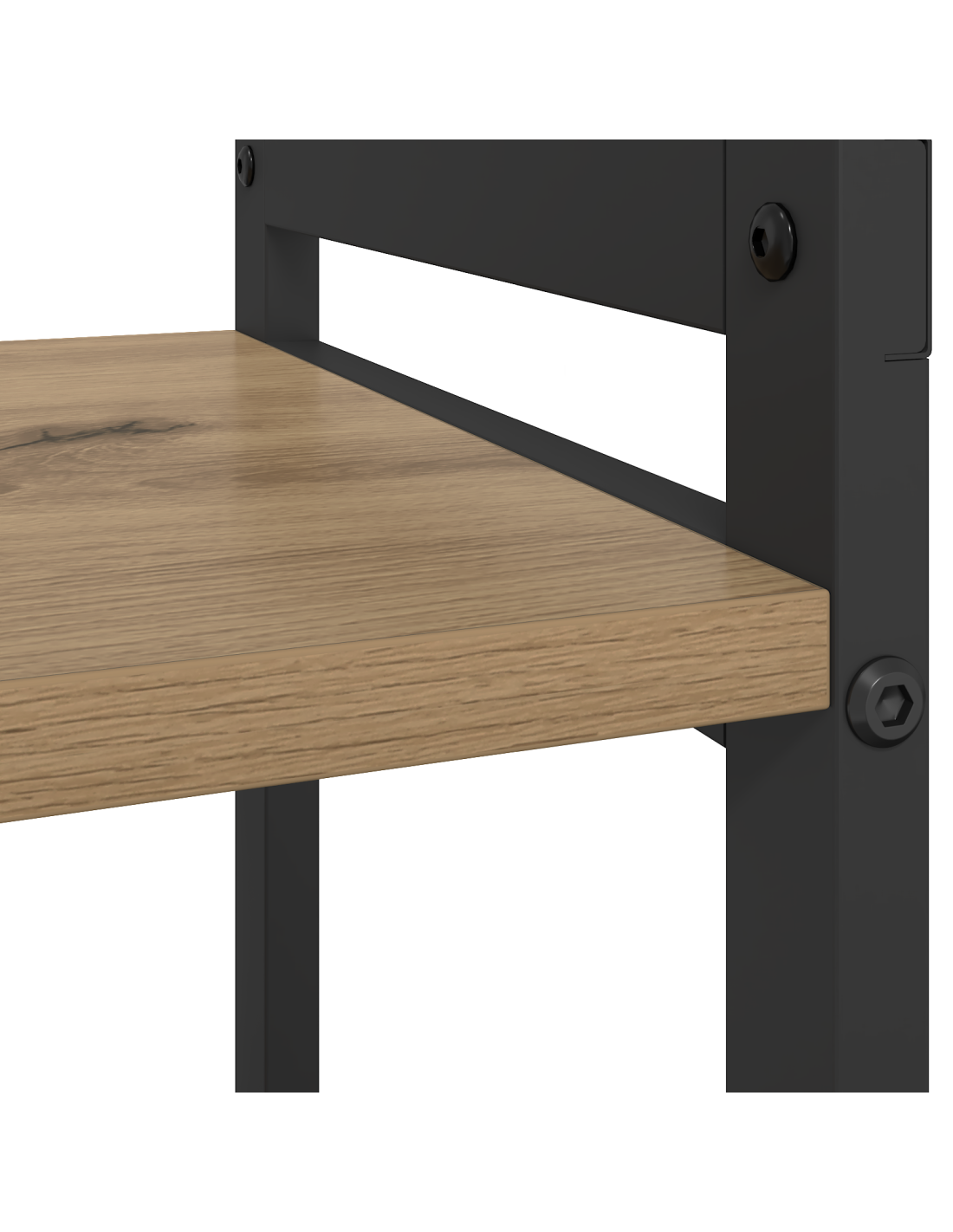 - Telaio in Acciaio Nero: Il telaio è di acciaio robusto con finitura nera, combina resistenza e bellezza. La sua solida costruzione supporta molti oggetti, assicurando stabilità.