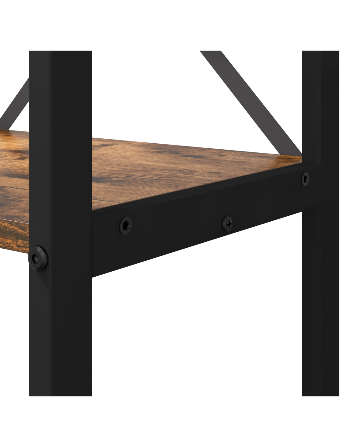 - Telaio in Acciaio Nero: Il telaio è di acciaio robusto con finitura nera, combina resistenza e bellezza. La sua solida costruzione supporta molti oggetti, assicurando stabilità.