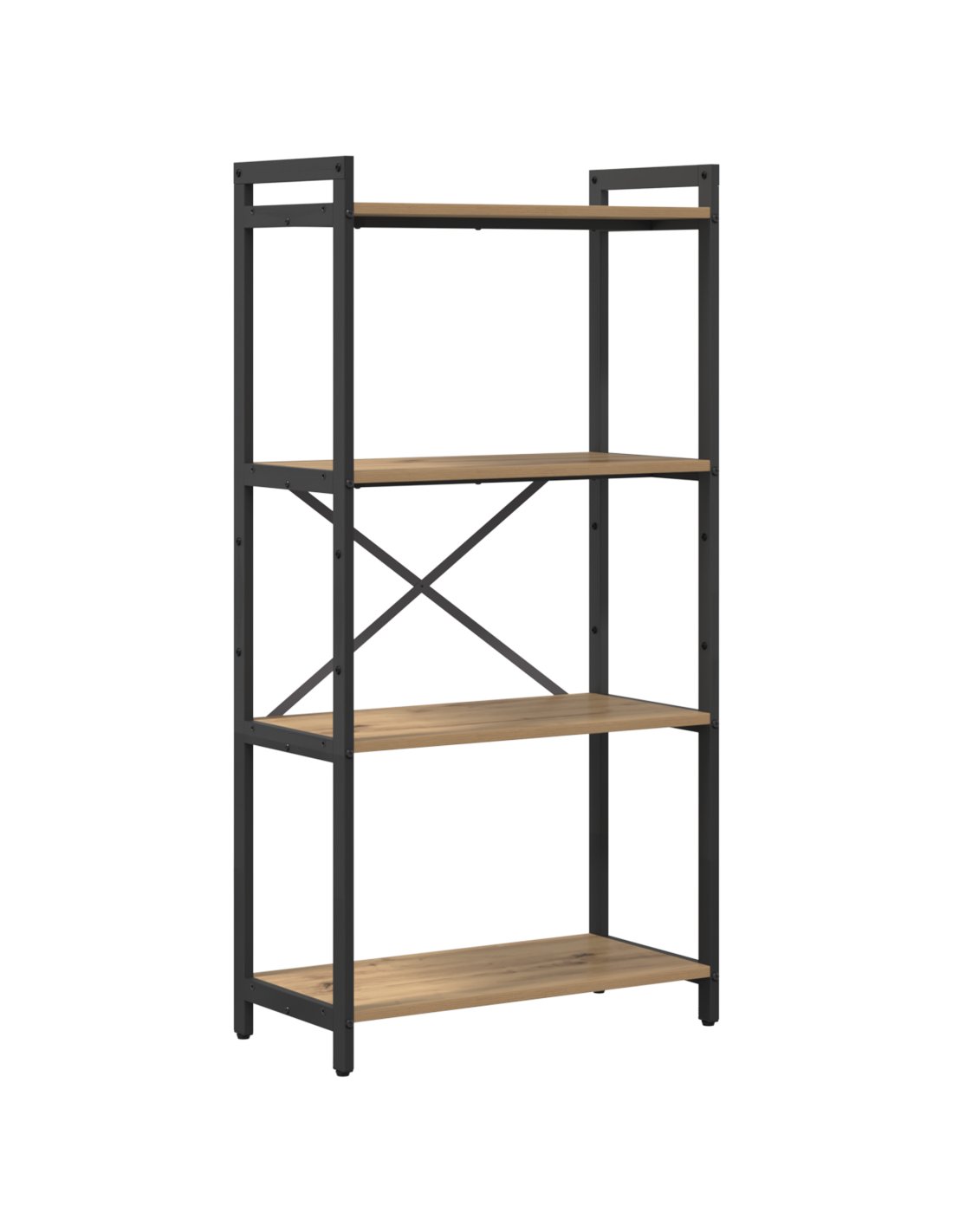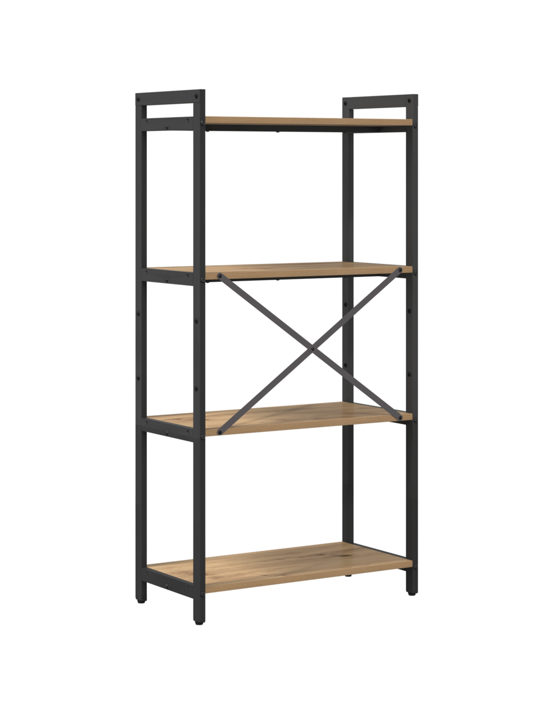 - Design a Ripiani Multipli: Con più livelli, la libreria offre spazio per organizzare e mostrare i tuoi libri preferiti. I ripiani distanziati ricevono libri di diverse dimensioni e permettono uno styling creativo.