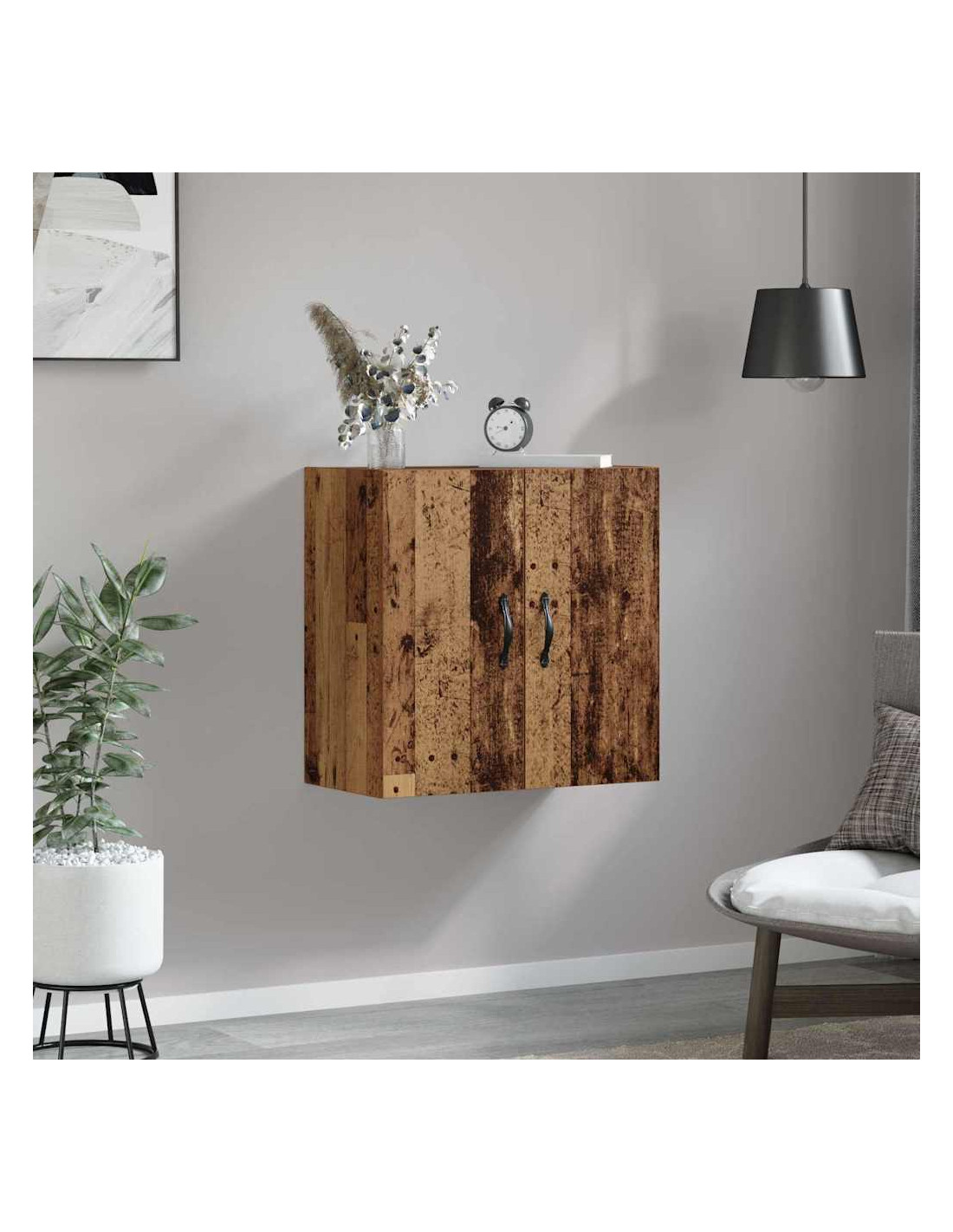 Questo armadietto da parete moderno è una soluzione innovativa per chi vive in spazi contemporanei. Con la sua forma rettangolare e il design semplice, si adatta perfettamente a qualsiasi stanza. È progettato per essere montato sulla parete, liberando spazio sul pavimento e mantenendo l'ambiente ordinato. Ideale per il soggiorno, offre un sacco di spazio di stoccaggio all'interno della sua struttura in legno ingegnerizzato, unendo estetica e funzionalità.