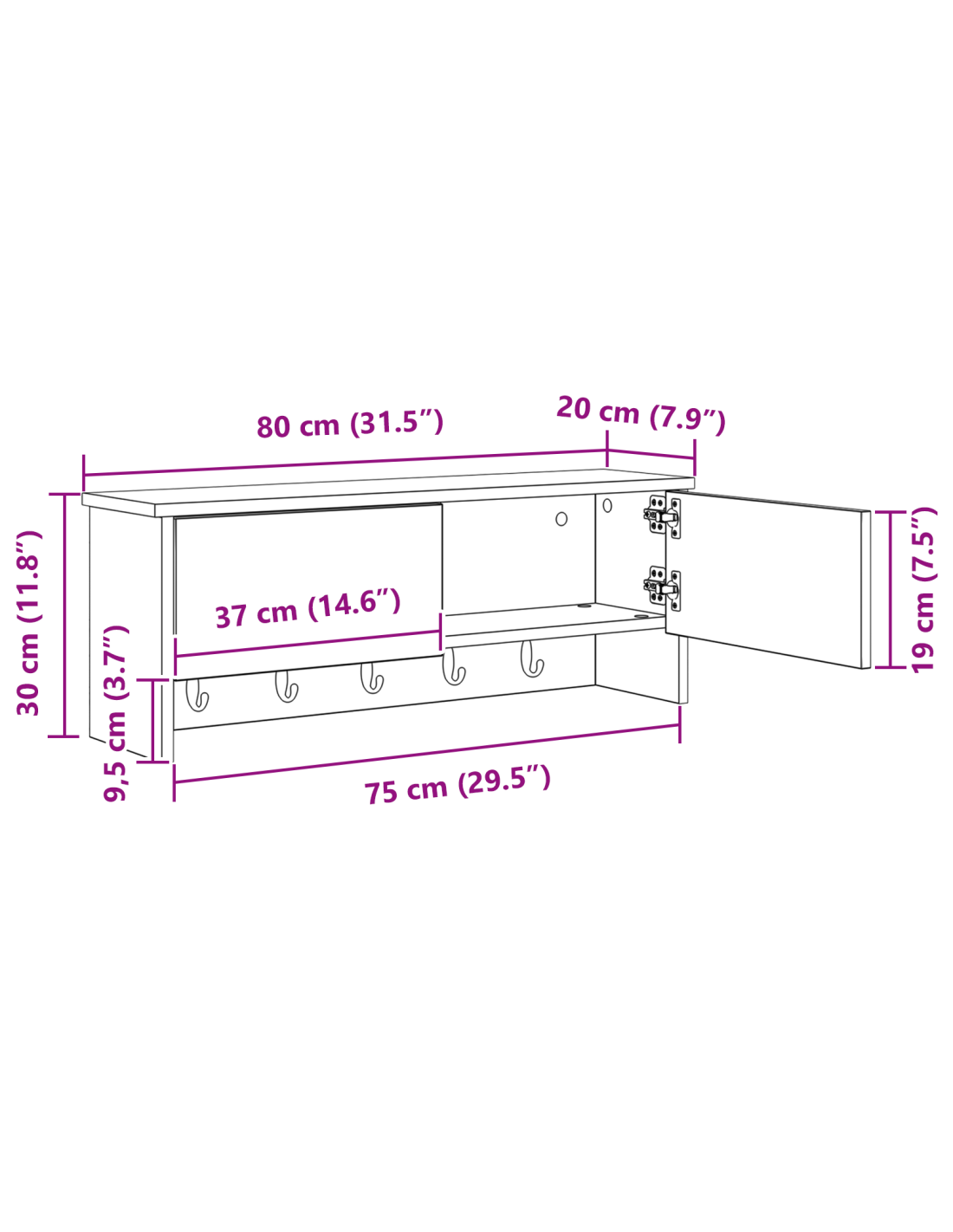 - Dimensioni complessive: 80 x 20 x 30 cm (L x P x A)