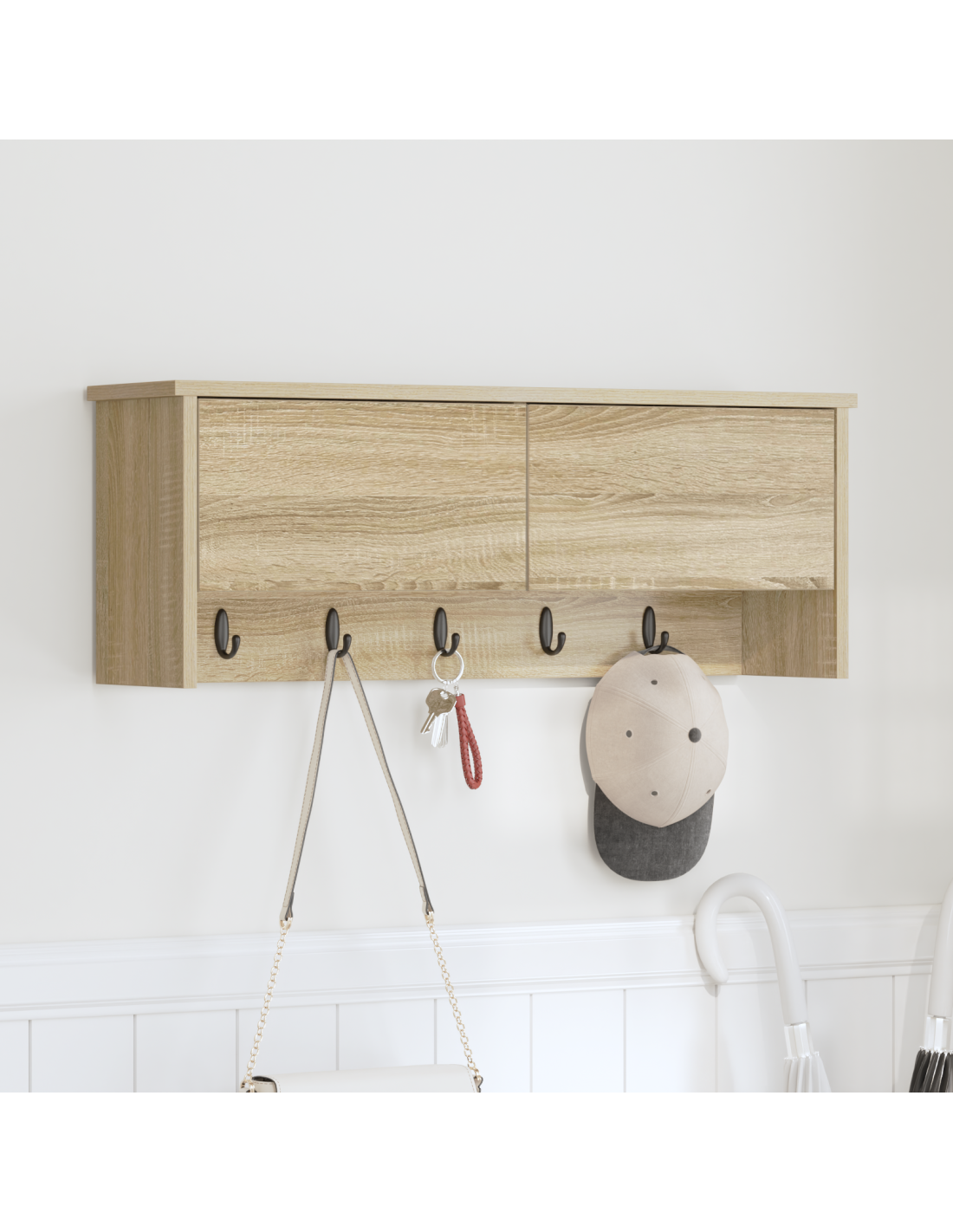 - Ganci multipli e funzionali Ha diversi ganci robusti, perfetti per appendere cappotti, borse e altro. I ganci sono ben distanziati, offrendo una soluzione organizzata per la vita quotidiana, rendendo tutto facilmente accessibile per tutti in famiglia.