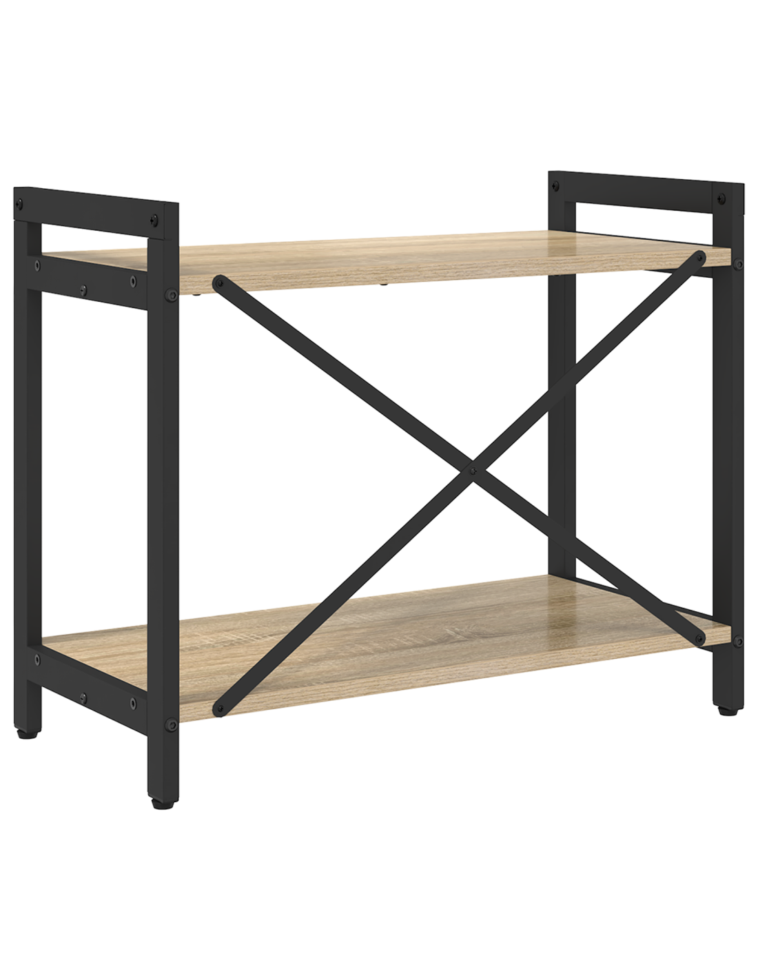 - Telaio in Acciaio Nero: Il telaio è di acciaio robusto con finitura nera, combina resistenza e bellezza. La sua solida costruzione supporta molti oggetti, assicurando stabilità.