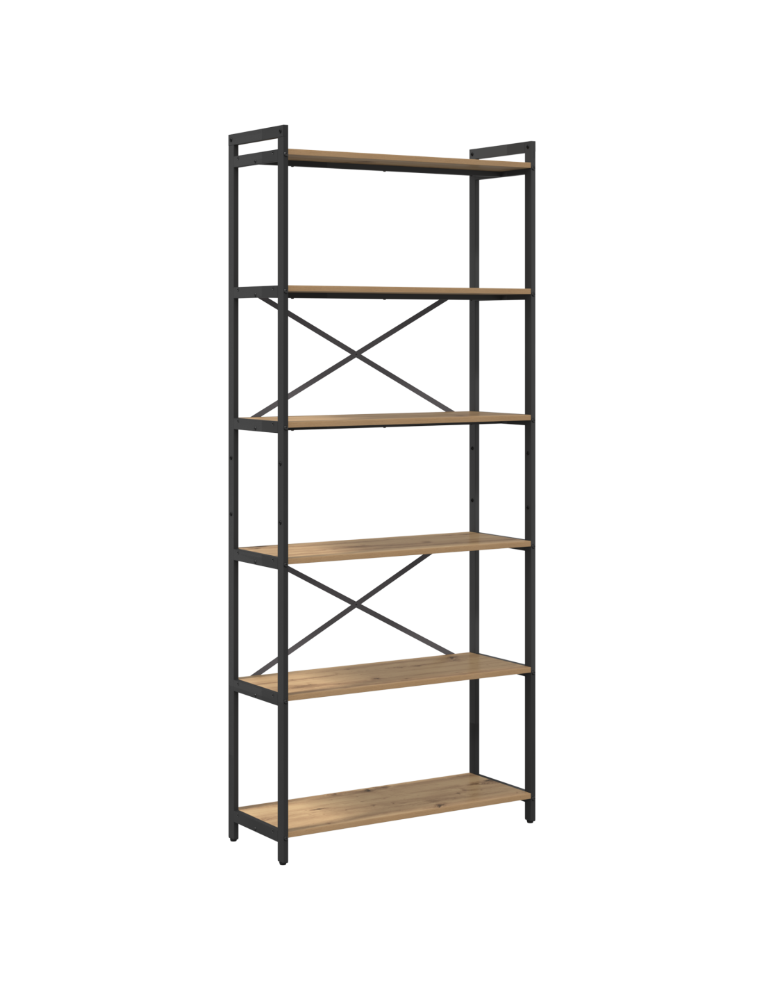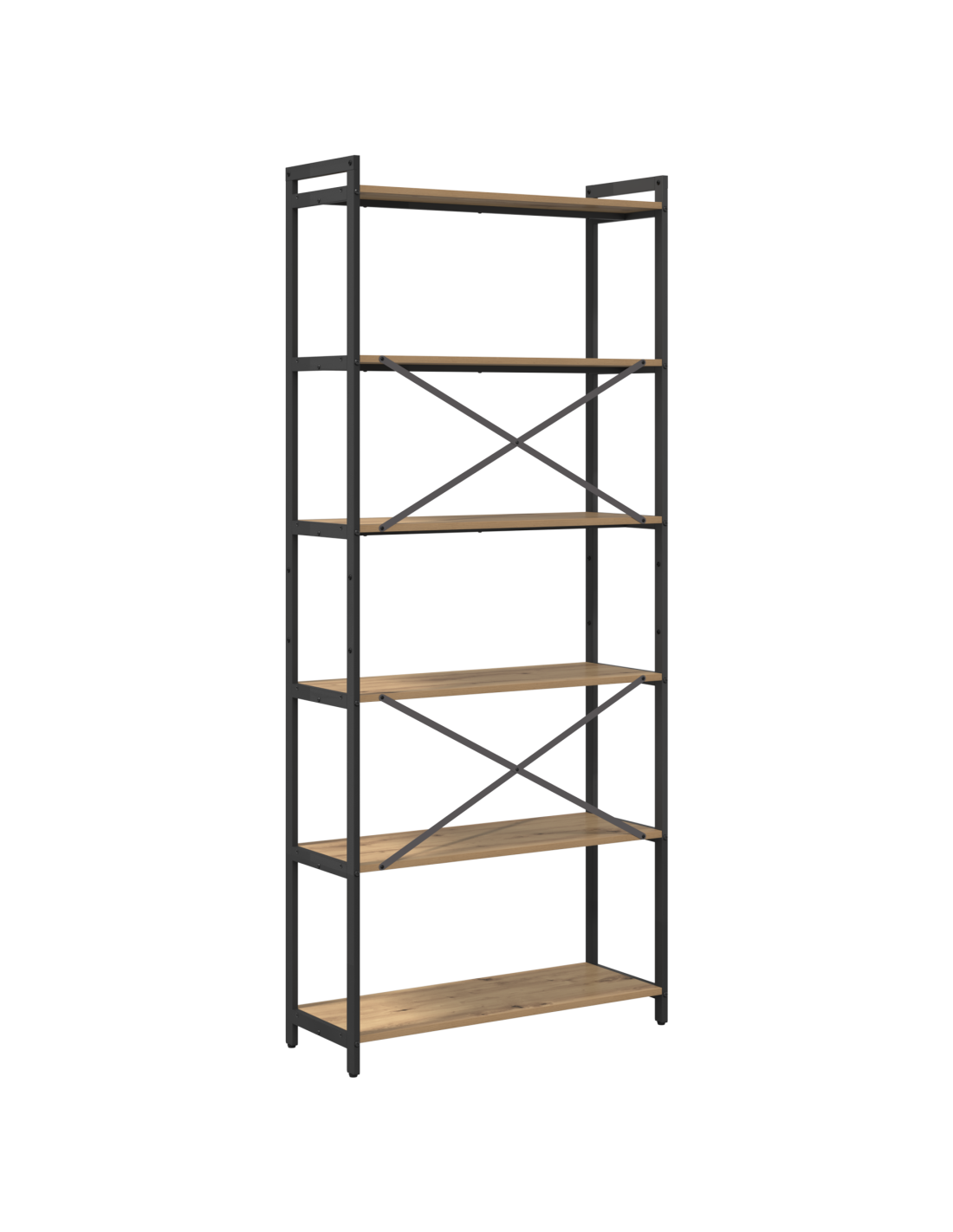 - Design a Ripiani Multipli: Con più livelli, la libreria offre spazio per organizzare e mostrare i tuoi libri preferiti. I ripiani distanziati ricevono libri di diverse dimensioni e permettono uno styling creativo.