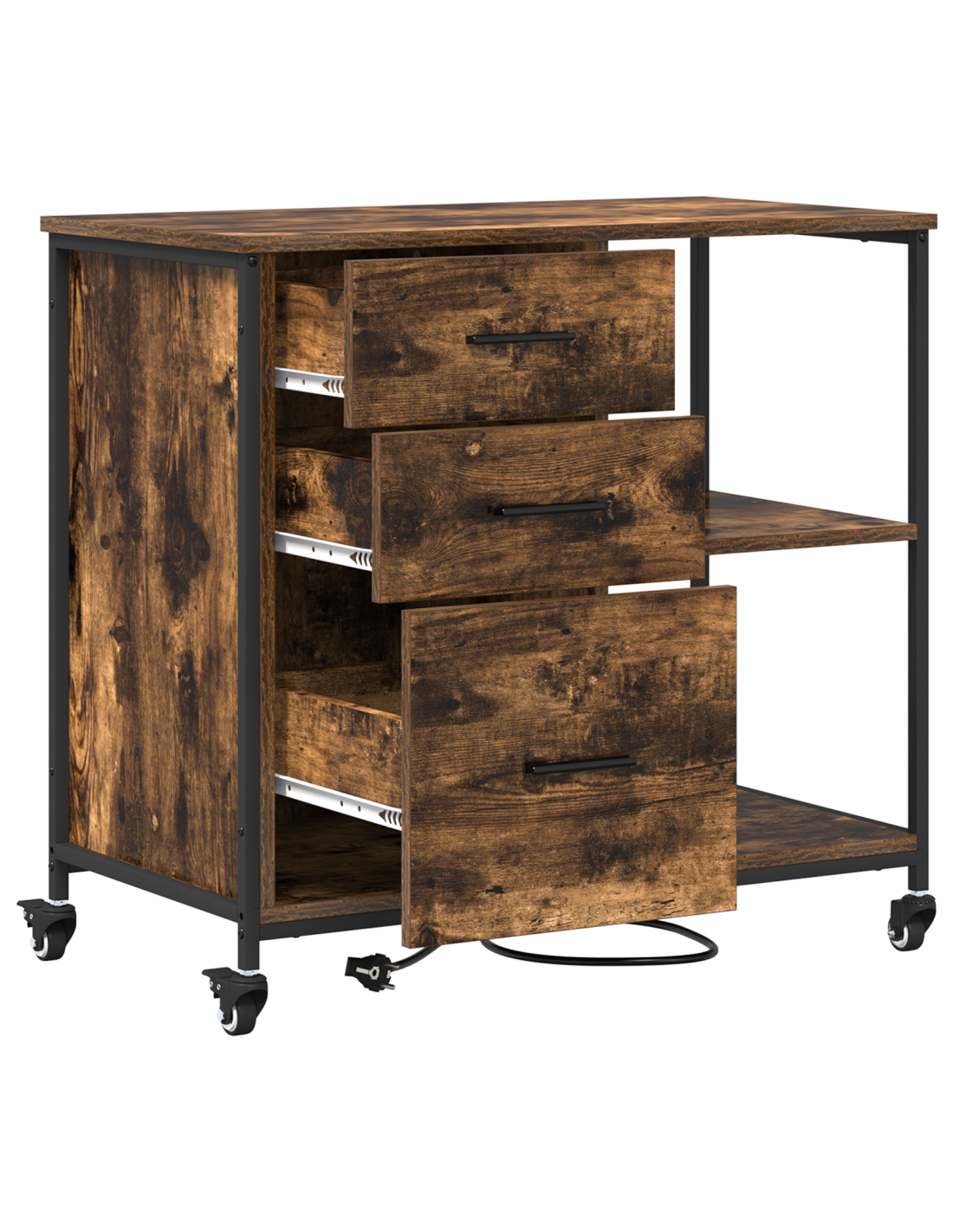 - Maniglie tradizionali per i cassetti: I cassetti hanno maniglie tradizionali che rendono facile prendere e riporre gli oggetti. Il design è studiato per funzionare bene, per permetterti di accedere rapidamente a ciò di cui hai bisogno.