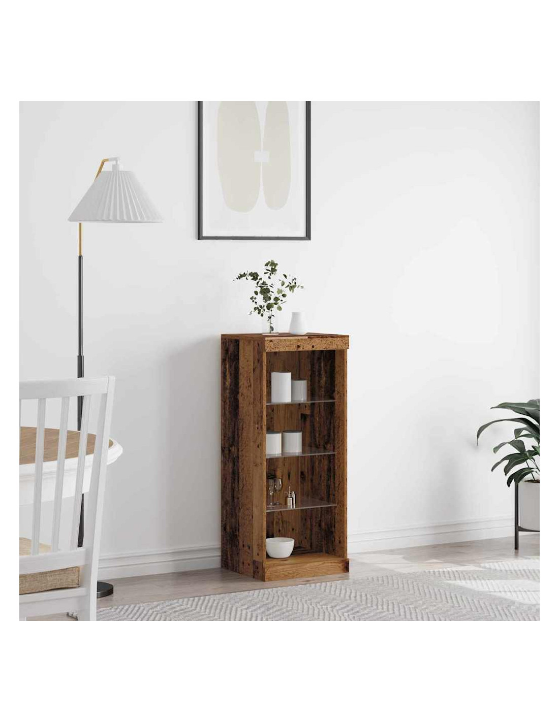 - Stoccaggio flessibile: Questa credenza massimizza lo spazio con molte opzioni di stoccaggio ed esposizione. Cassetti e ripiani garantiscono organizzazione e accessibilità, contribuendo a mantenere gli ambienti in ordine. I ripiani in vetro offrono una vista chiara degli oggetti.