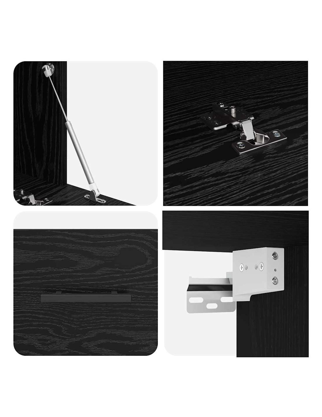 - Design Salvaspazio La caratteristica montata a muro consente di utilizzare efficacemente lo spazio verticale. Questo cabinet è perfetto per stanze o spazi piccoli dove lo spazio sul pavimento è limitato, assicurando che il resto della tua stanza rimanga ordinato. L'installazione a muro non solo libera spazio ma aggiunge anche un effetto galleggiante chic al tuo arredamento.