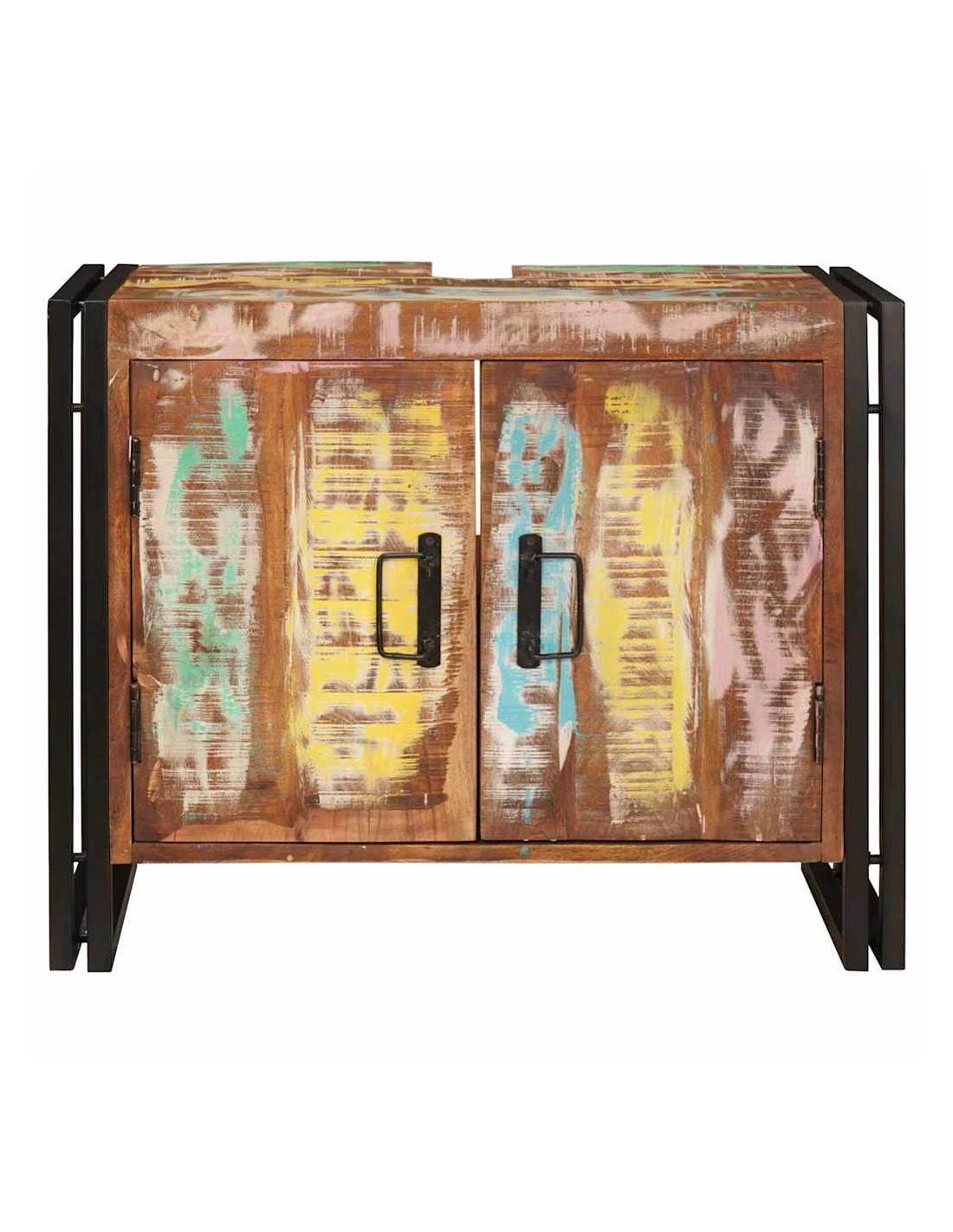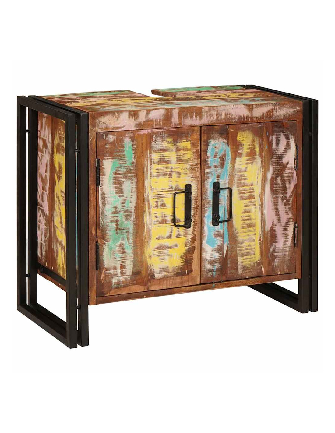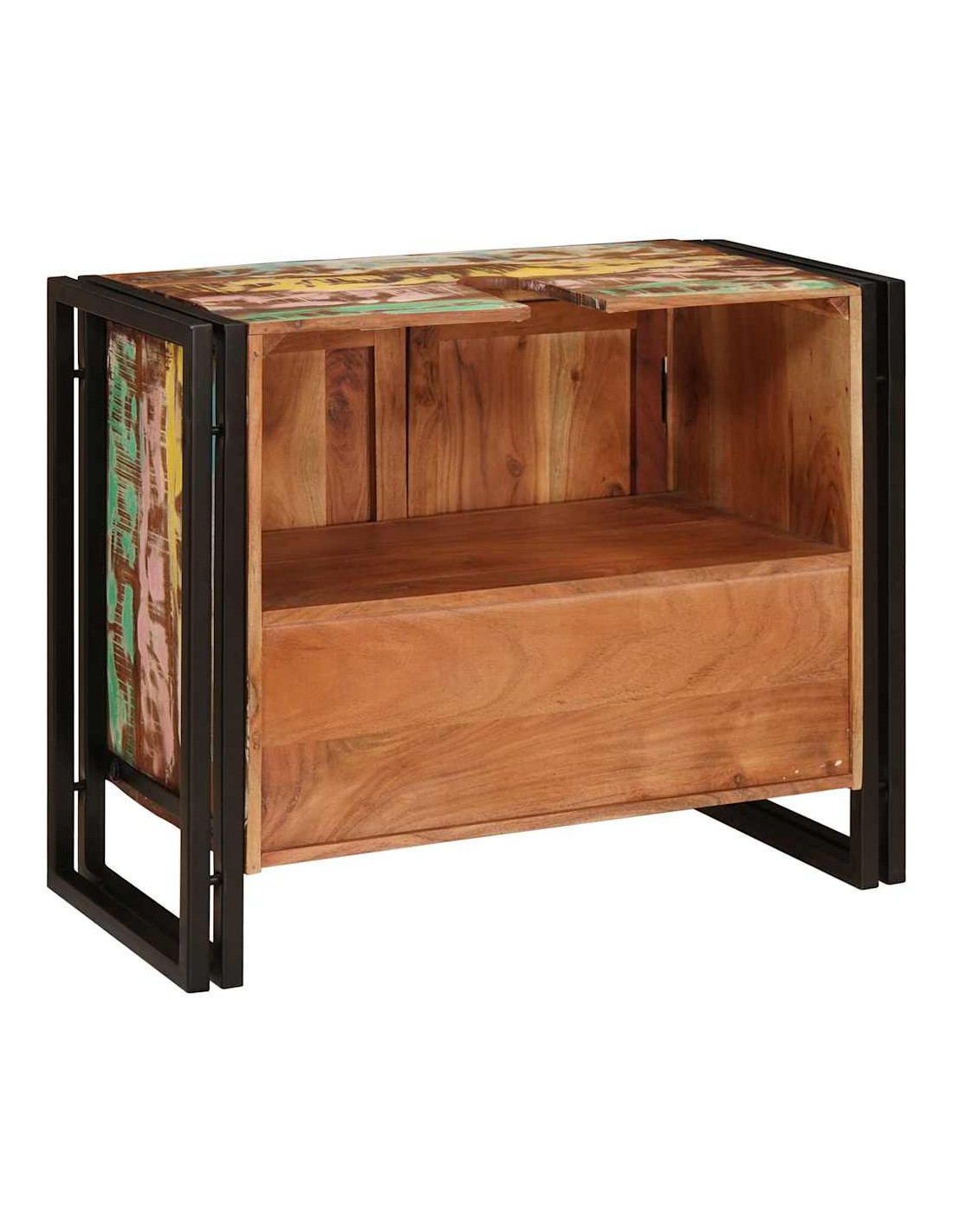 Questo mobile lavabo, simbolo del design moderno, è l'ideale per completare l'estetica dei bagni di oggi. La sua forma rettangolare sprigiona semplicità e stile, rendendolo perfetto per chi cerca ordine e bellezza. Non solo offre ampi ripiani interni, ma ha anche un telaio in ferro nero che lo rende non solo un'unità di stoccaggio, ma anche un elemento d'arredo che arricchisce l'atmosfera di un bagno, creando uno spazio coeso e visivamente attraente.