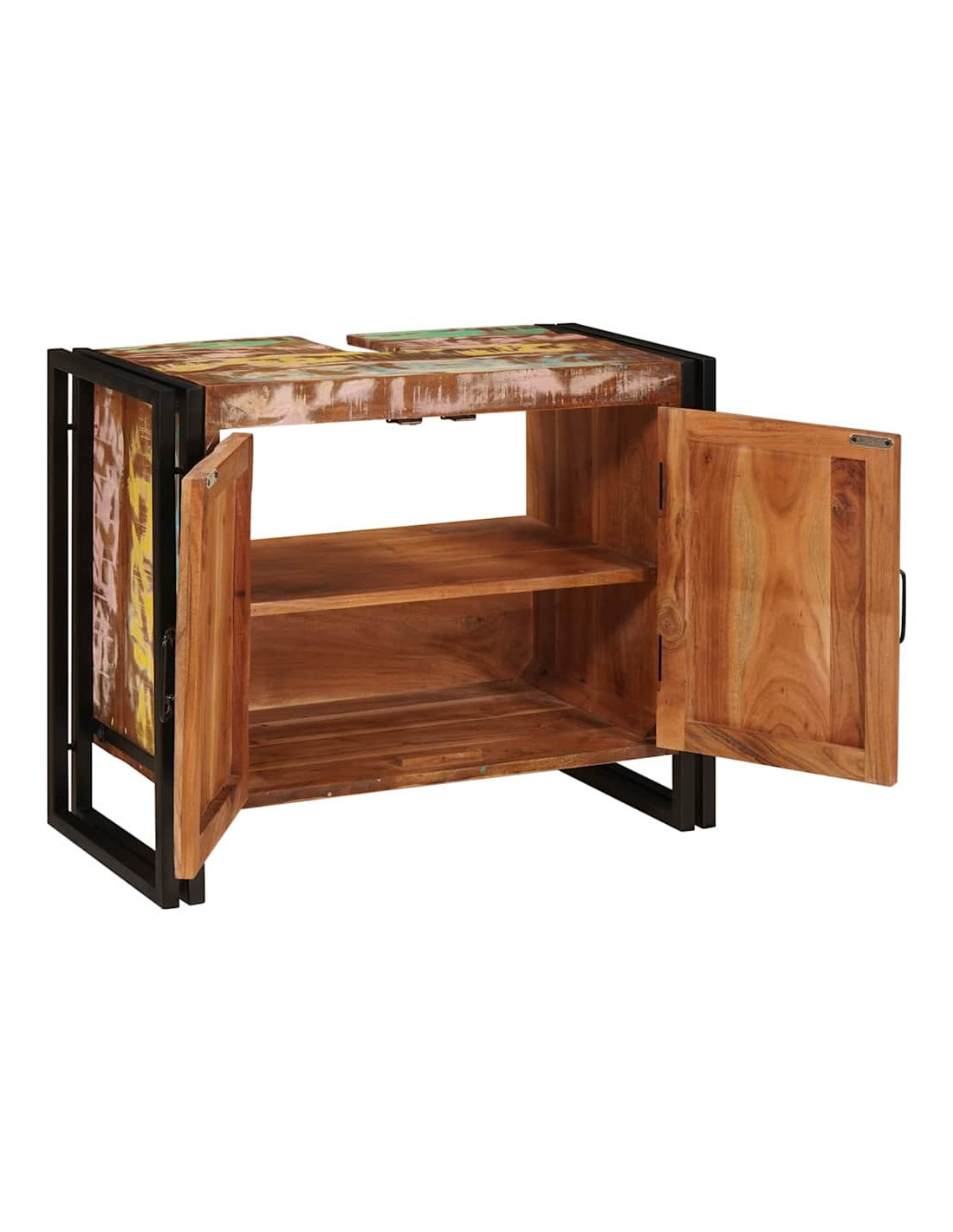 - Struttura e gambe in ferro: Questo mobile lavabo ha una struttura forte in ferro e gambe stilose che garantiscono supporto e stabilità. Conosciuto per la sua durata, il ferro garantisce una base solida che resiste perfettamente all'umidità del bagno. La finitura scura completa lo stile moderno, rendendo l'unità davvero accattivante.