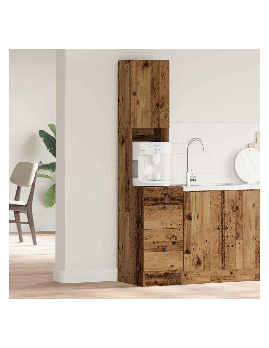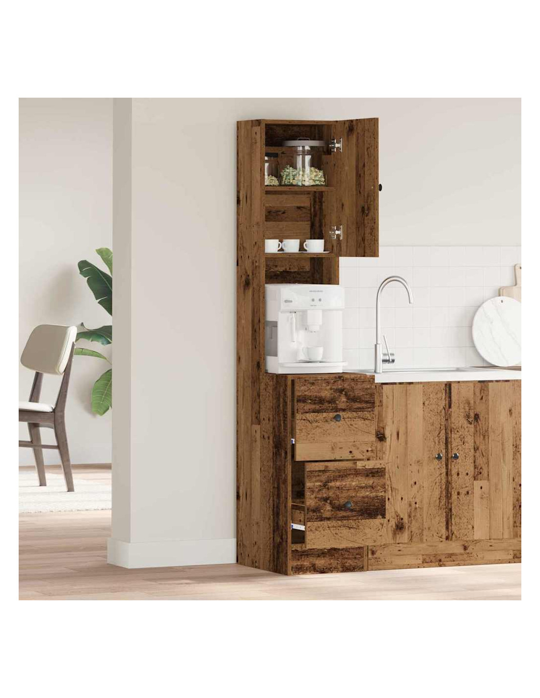 - Materiale Premium: Con legno ingegnerizzato, questo sideboard è super stabile e resistente, pensato per durare nel tuo spazio cucina. La scelta dei materiali è in linea con i trend moderni, offrendo una soluzione pratica e stilosa che regge bene all’uso quotidiano.