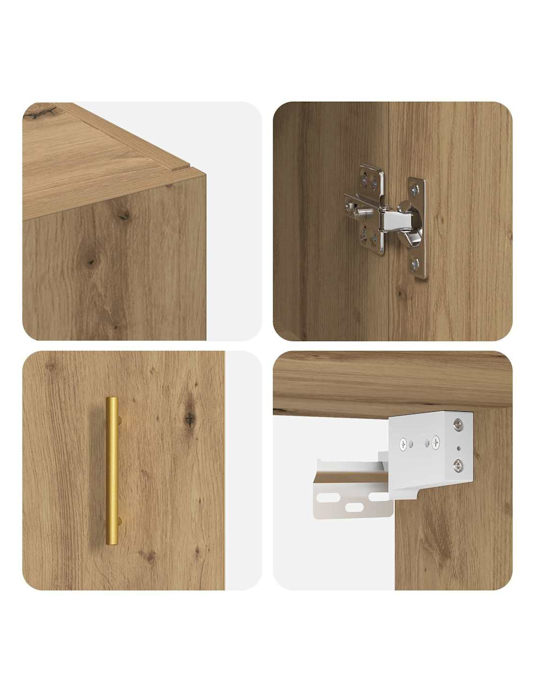 - Materiali: L'armadio da parete è interamente in legno ingegnerizzato, conosciuto per la sua resistenza e la finitura liscia. Questo materiale assicura che l'armadio duri a lungo e dona un look elegante, perfetto per gli interni moderni. La struttura in legno ingegnerizzato è resistente alla deformazione e assicura stabilità e robustezza, ideali per un living dinamico.