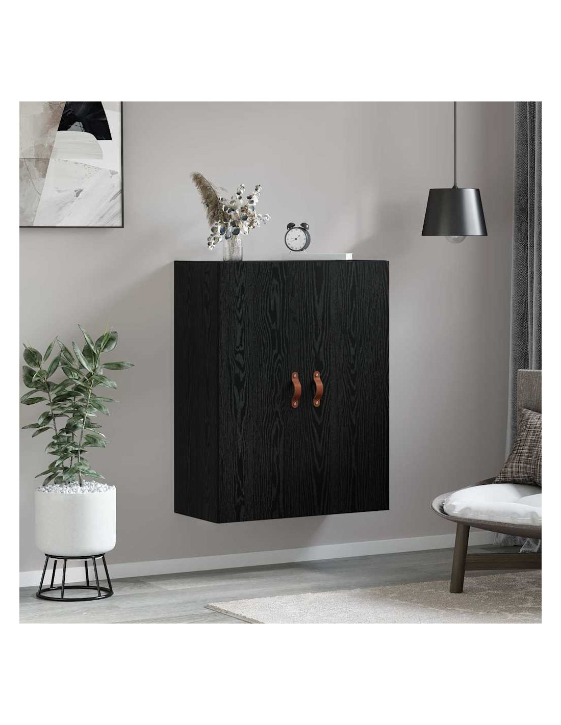 Questo cabinet da muro è un'aggiunta pratica e versatile a qualsiasi soggiorno o studio. Progettato per essere fissato al muro, non solo risparmia spazio, ma diventa anche un elemento d'arredo di stile con le sue linee pulite. La sua forma rettangolare e il design moderno lo rendono ideale per arricchire l'estetica degli interni, unendo bellezza e praticità. Costruito in legno ingegnerizzato, è robusto e durevole.