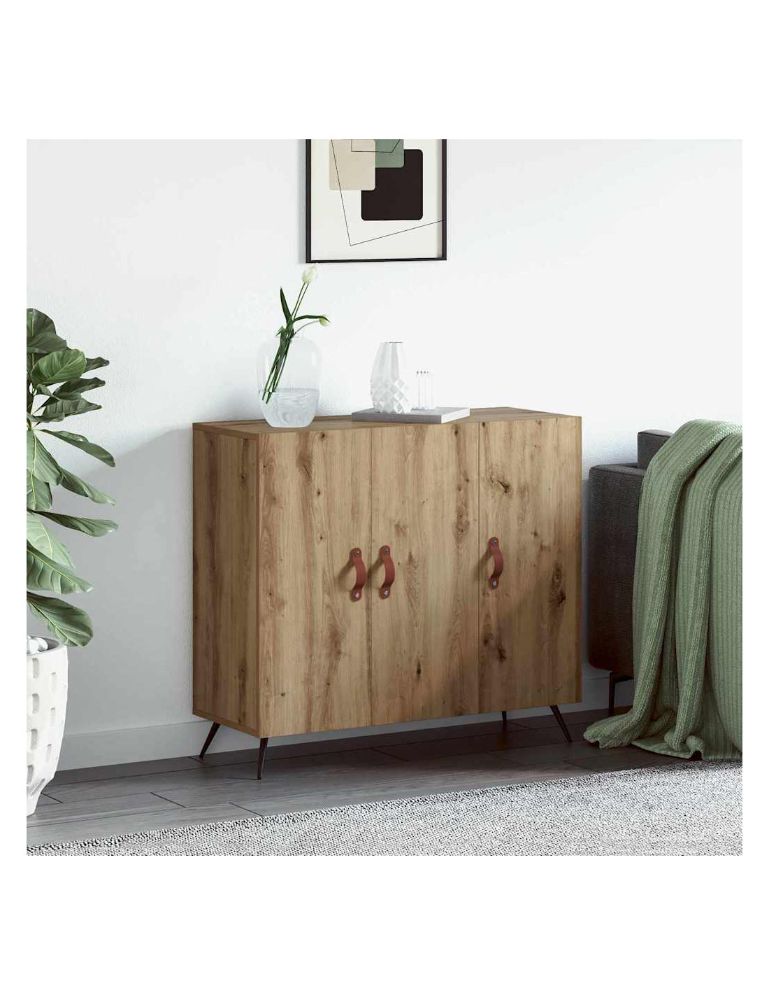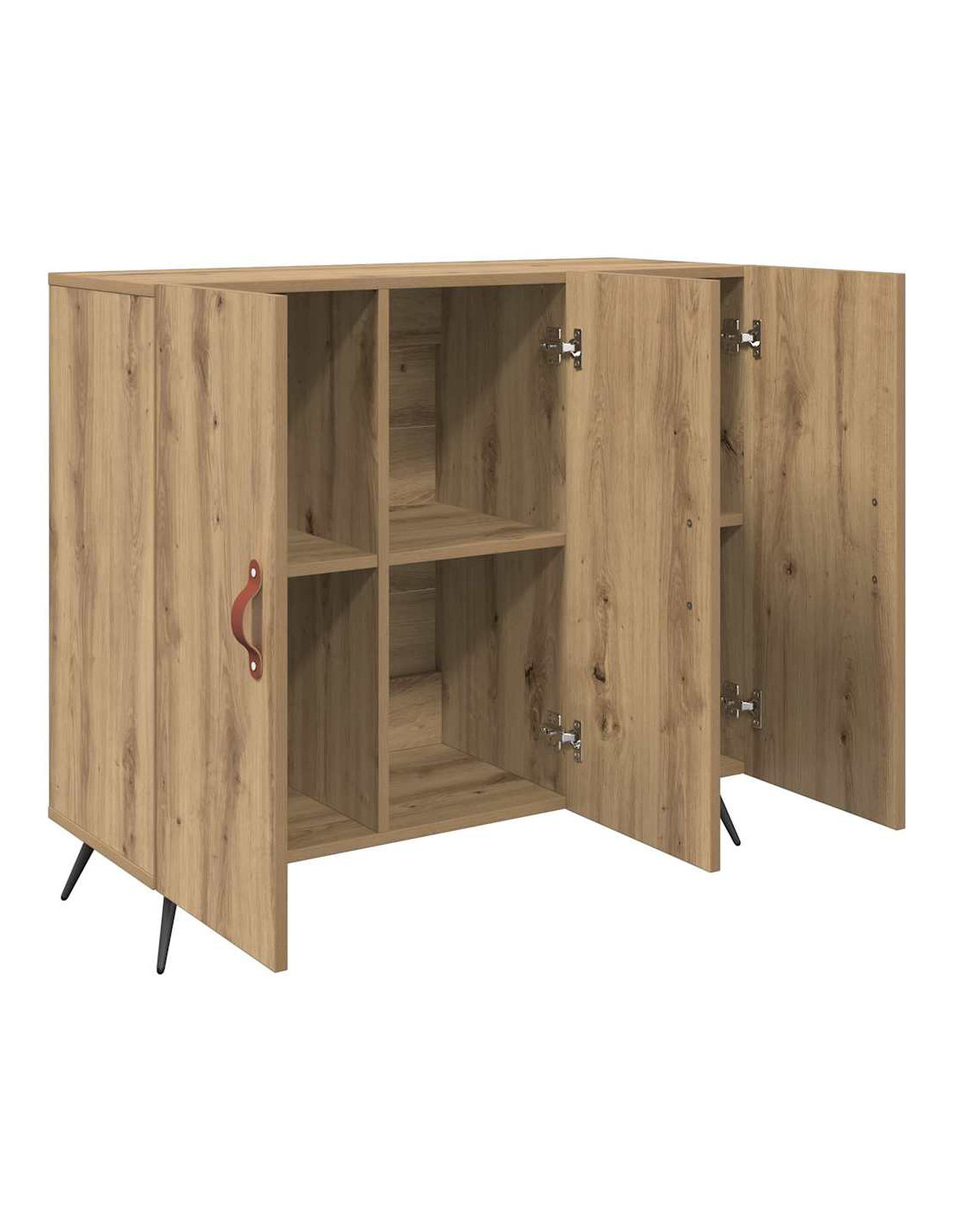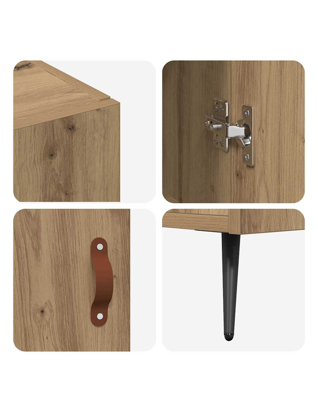 - Componenti inclusi: Le porte a cerniera con maniglie in pelle aggiungono un tocco di calore, mentre le gambe affusolate garantiscono stabilità e un look moderno. Questo mix funzionale lavora insieme per un’esperienza di stile e utilità, rendendo lo stoccaggio quotidiano facile e piacevole.