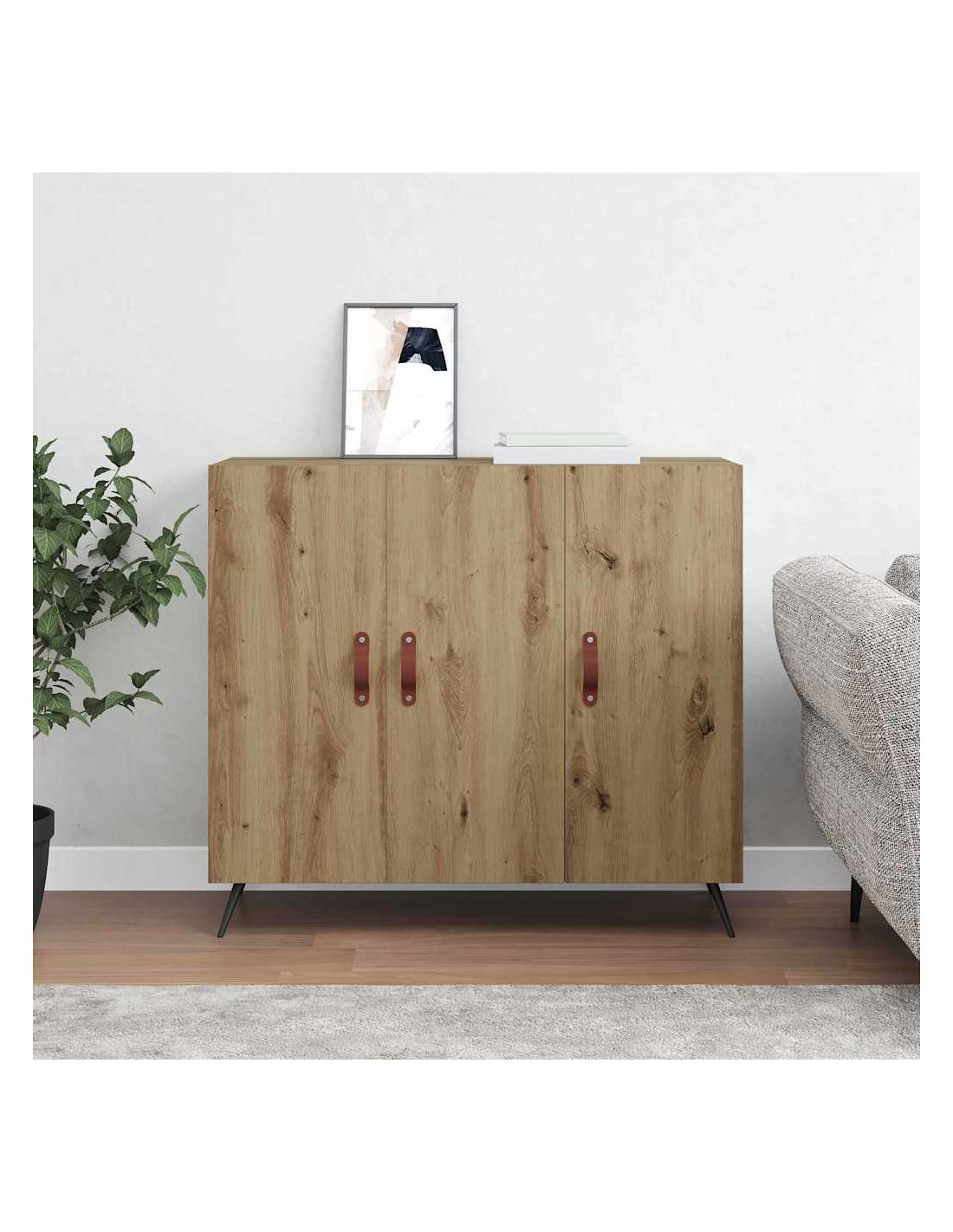 - Materiali: La credenza è fatta in legno ingegnerizzato, noto per la sua robustezza e affidabilità. Questo materiale offre grande resistenza, rendendolo perfetto per famiglie che cercano mobili duraturi. La texture raffinata e le tonalità calde creano un'atmosfera accogliente, fondendosi bene con vari stili d'arredo.