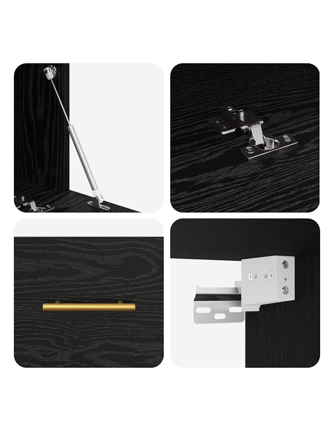 - Porte a Cerniera: Le robuste porte a cerniera in legno ingegnerizzato si aprono senza problemi, garantendo accesso rapido alle tue cose. Tengono tutto in ordine, offrendo un aspetto ordinato in qualsiasi stanza.