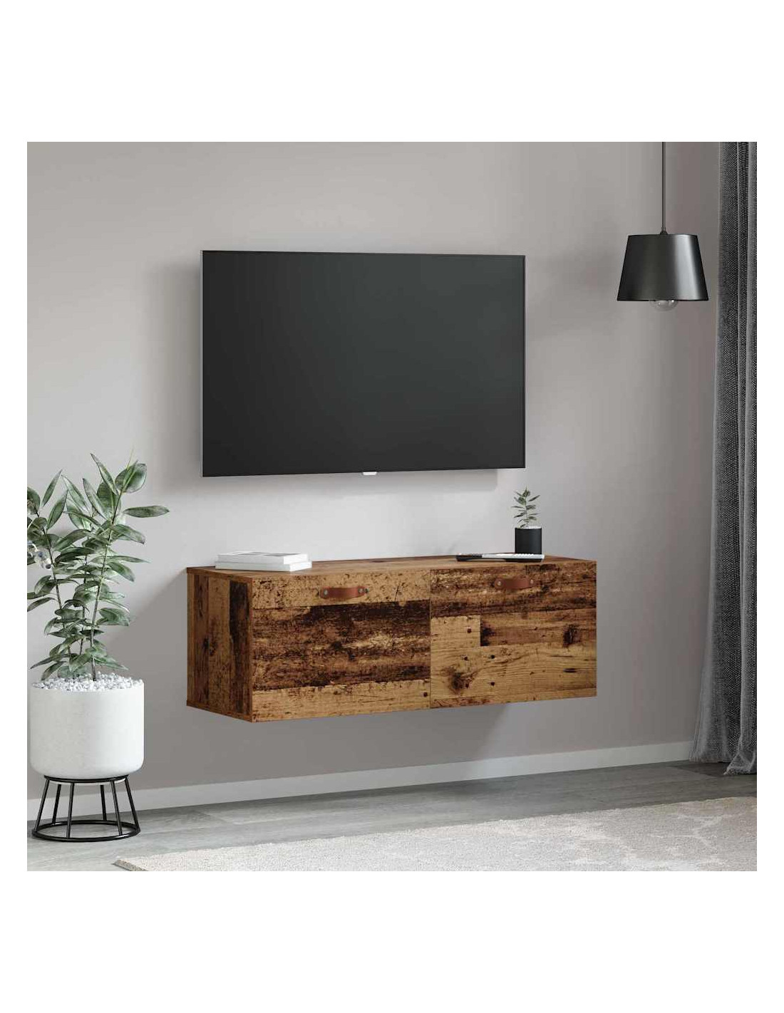 - Componenti inclusi: Include robuste porte a cerniera in legno ingegnerizzato, per un accesso facile e pratico. Le maniglie in pelle aggiungono un tocco di calore e stile. Il retro è progettato per essere discreto, fondendosi bene con la parete per un look più elegante.