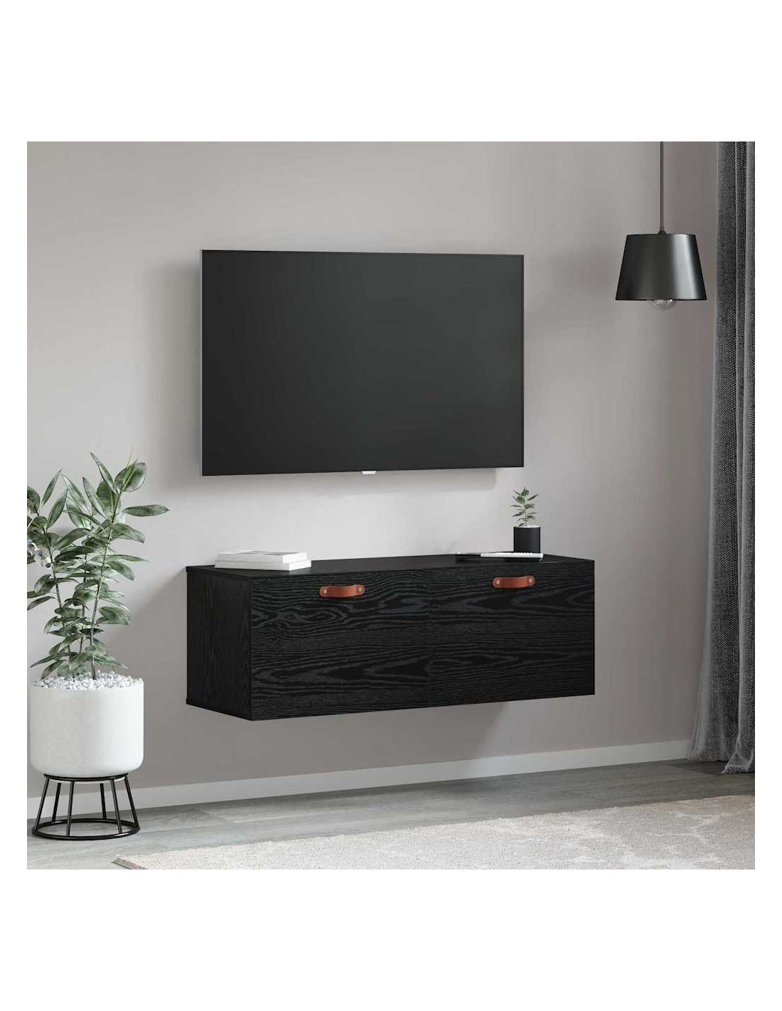 - Componenti inclusi: Include robuste porte a cerniera in legno ingegnerizzato, per un accesso facile e pratico. Le maniglie in pelle aggiungono un tocco di calore e stile. Il retro è progettato per essere discreto, fondendosi bene con la parete per un look più elegante.