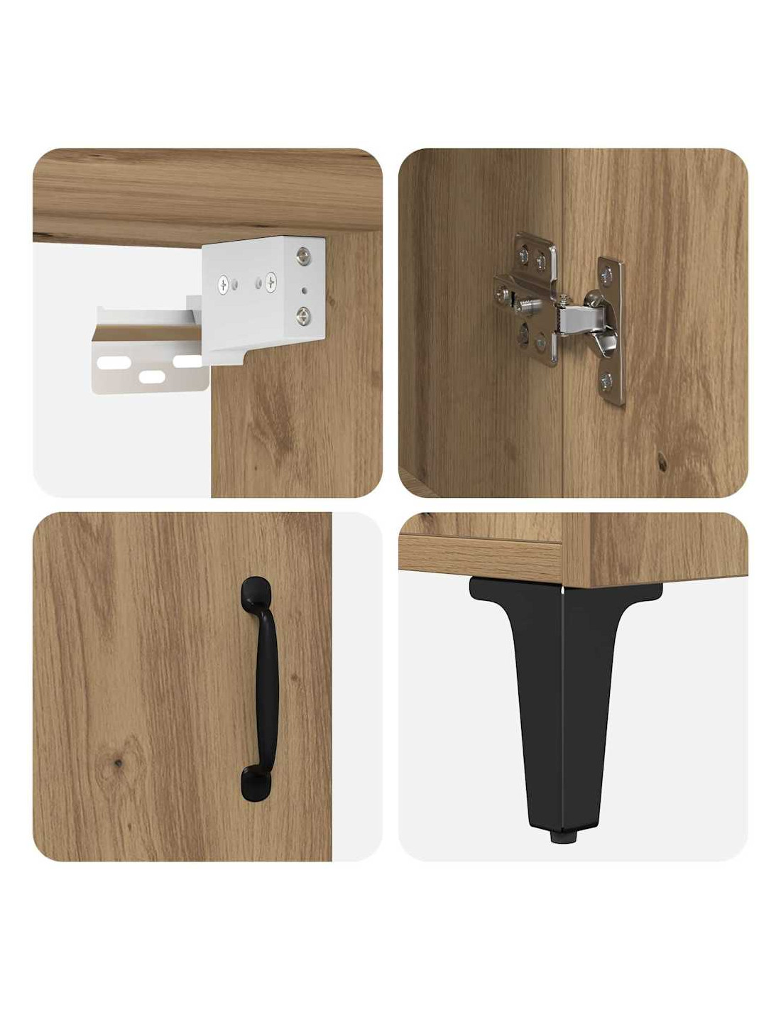 - Manutenzione e cura: Questo highboard è facile da mantenere. Basta spolverare con un panno asciutto per tenerlo pulito. Evita prodotti chimici aggressivi per preservare il legno. Assicurati di montarlo correttamente con gli strumenti giusti per mantenerlo stabile.