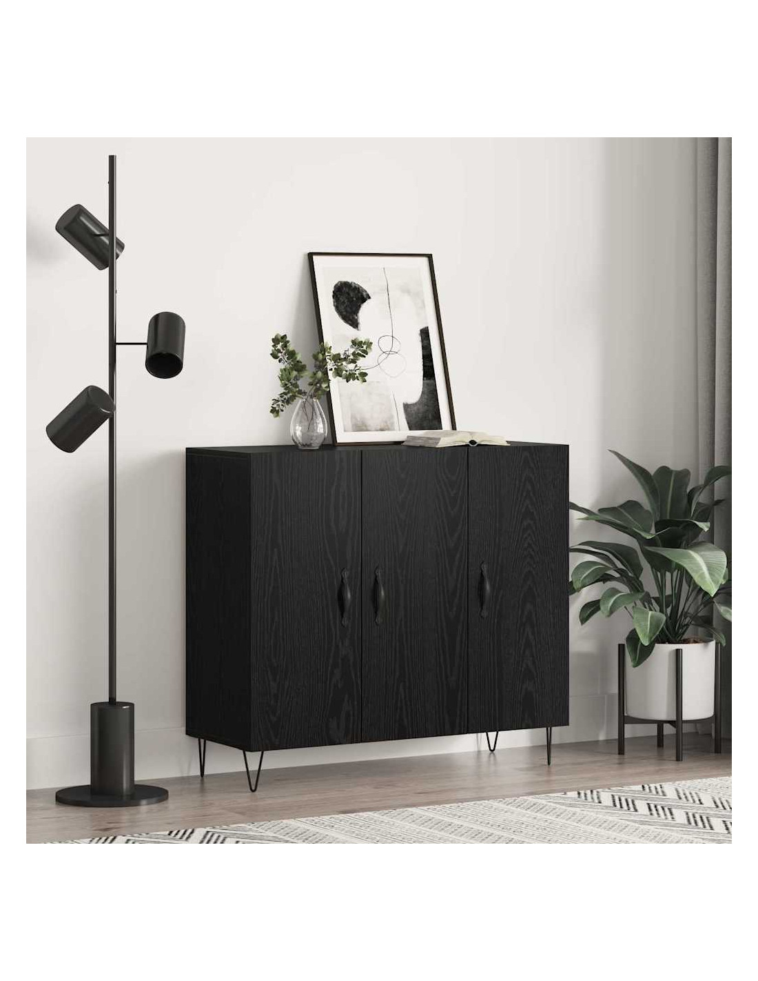 - Costruzione in legno ingegnerizzato Resistente e duraturo, questo sideboard è realizzato in legno ingegnerizzato, scelto per la sua forza e bellezza. La finitura elegante resiste all'uso quotidiano, rendendolo una scelta sicura per il tuo stoccaggio. L'aspetto uniforme assicura un look liscio in ogni superficie.
