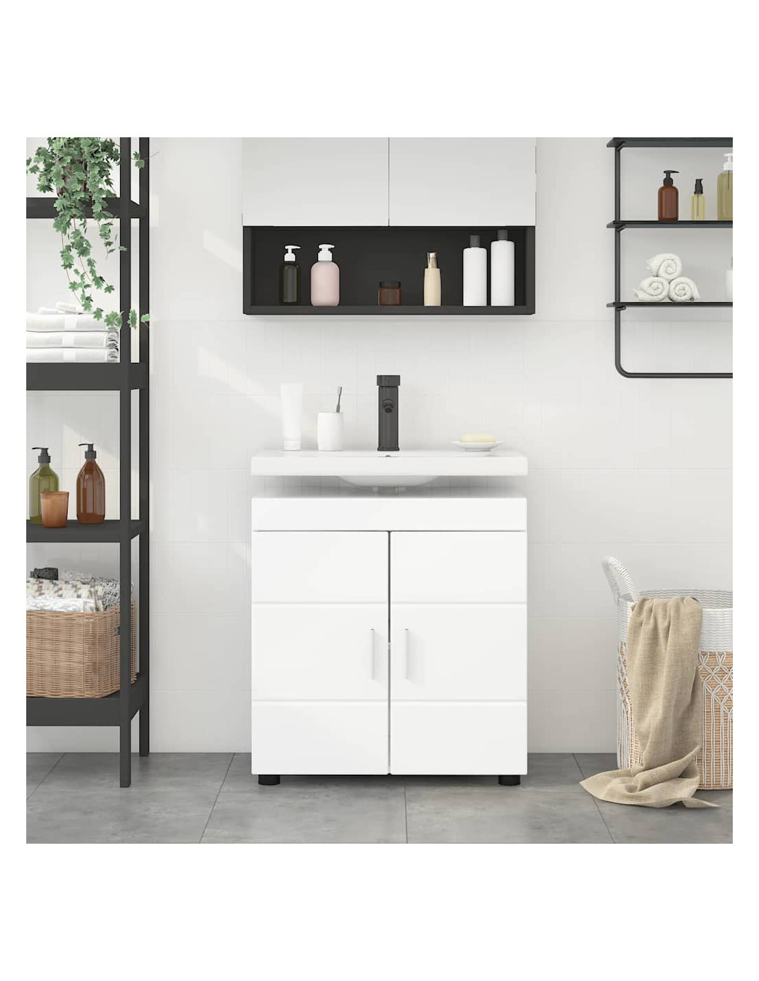 Questo set di armadietti moderni per il bagno dà un tocco elegante e minimalista al tuo spazio. Pensato per essere funzionale e stiloso, usa legno ingegnerizzato per offrire una soluzione di stoccaggio resistente e duratura. Perfetto per ogni ambiente, si integra bene nei bagni moderni, fornendo ampio spazio per riporre tutto il necessario. La texture liscia e la finitura opaca aggiungono un tocco di classe, mentre il design pratico si adatta a qualsiasi dimensione di bagno.
