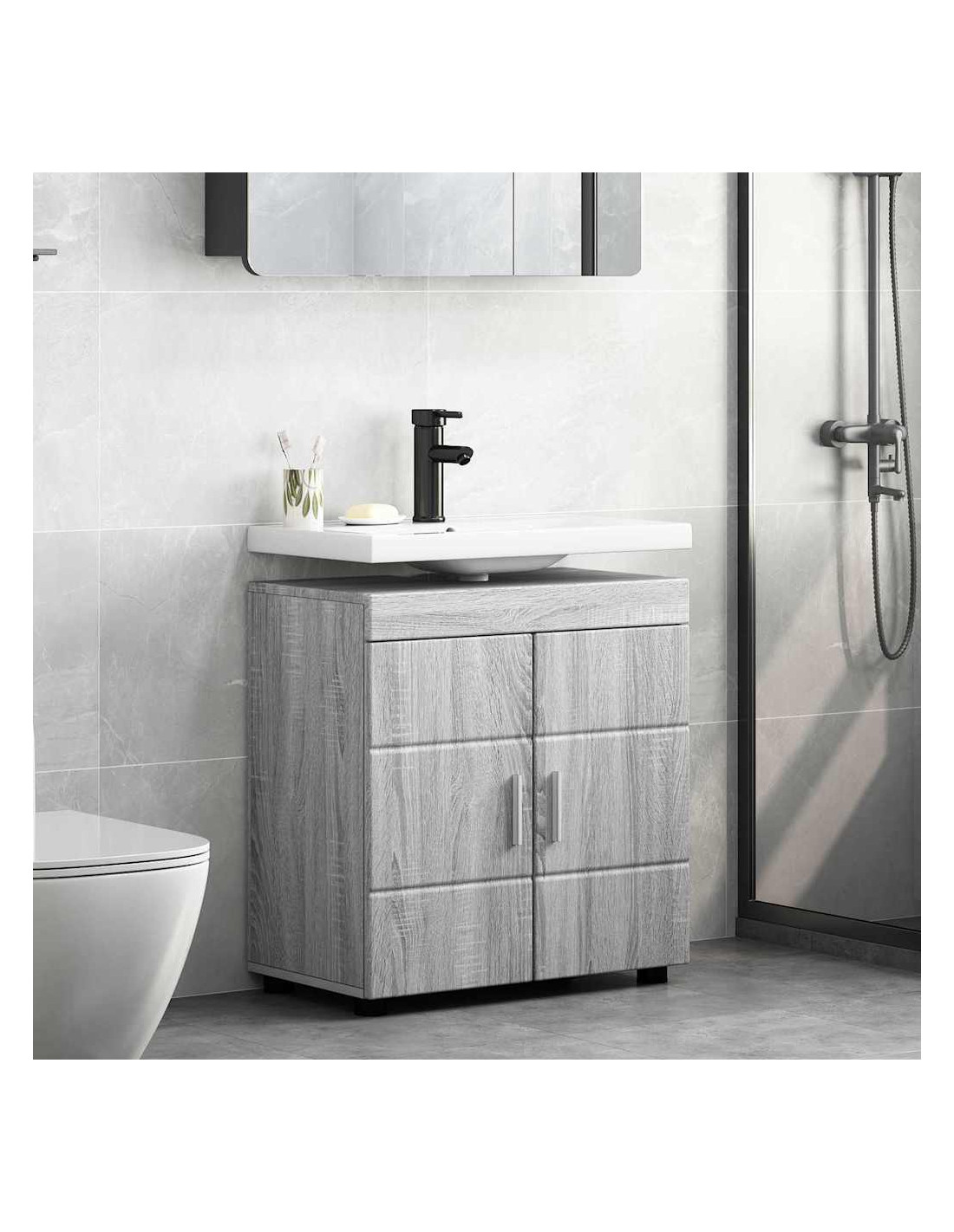 Questo set di armadietti moderni per il bagno dà un tocco elegante e minimalista al tuo spazio. Pensato per essere funzionale e stiloso, usa legno ingegnerizzato per offrire una soluzione di stoccaggio resistente e duratura. Perfetto per ogni ambiente, si integra bene nei bagni moderni, fornendo ampio spazio per riporre tutto il necessario. La texture liscia e la finitura opaca aggiungono un tocco di classe, mentre il design pratico si adatta a qualsiasi dimensione di bagno.
