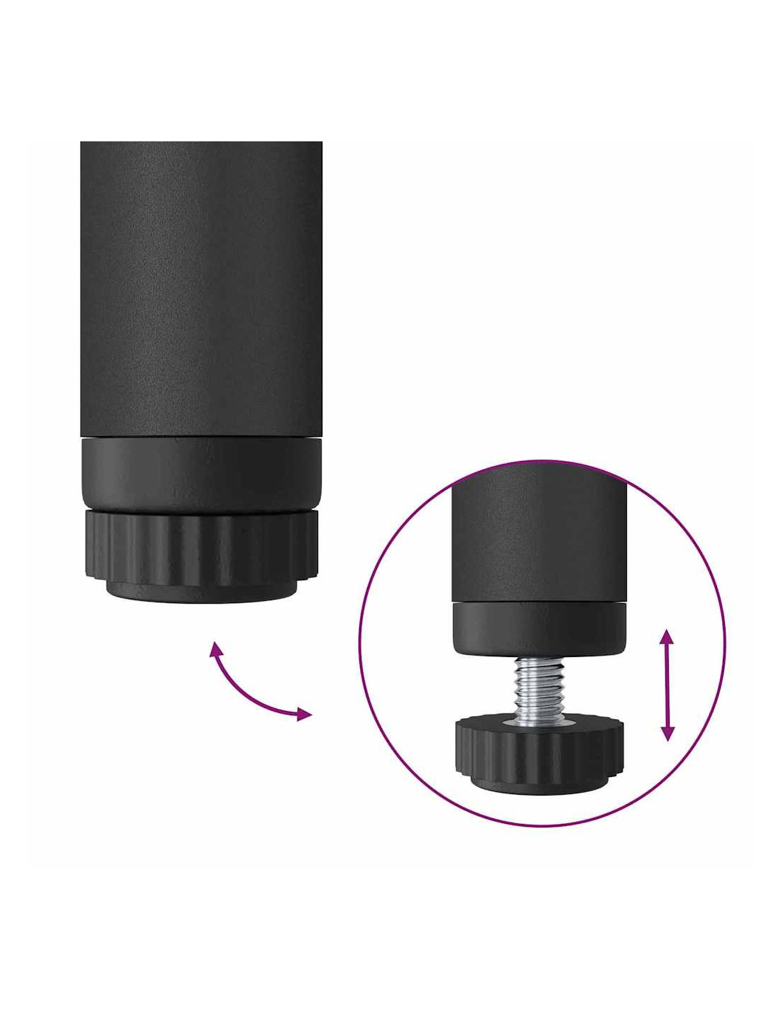 - Gambe in acciaio nero Sostenuta da robuste gambe in acciaio con una finitura nera elegante, queste gambe offrono stabilità e sostegno alla struttura. La loro forma cilindrica completa il look contemporaneo, garantendo una base solida.