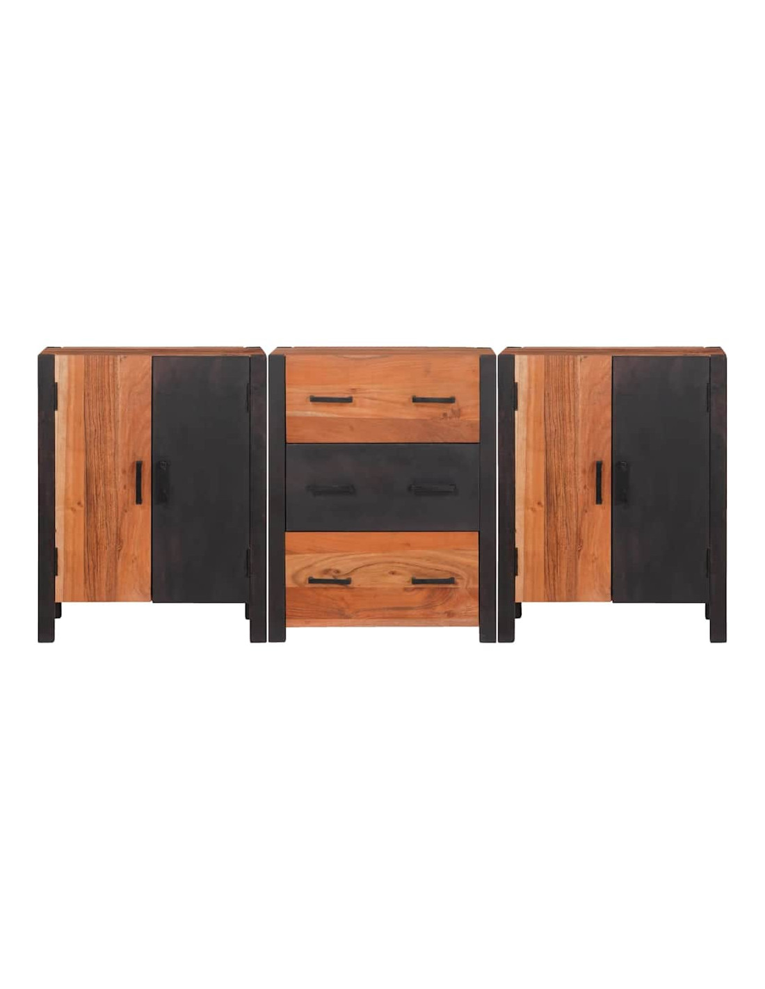 Questo sideboard è un mobile elegante pensato per case moderne. Unisce bellezza e praticità, con una forma rettangolare che si integra perfettamente negli ambienti contemporanei. Fatto in legno massello di acacia, questo sideboard non solo svolge il suo compito ma funge anche da pezzo distintivo, portando calore con la sua finitura marrone ricca e i dettagli neri sottili. È perfetto per il soggiorno, adattandosi facilmente a qualsiasi decorazione e offrendo tanto spazio di archiviazione senza rinunciare al tuo stile.