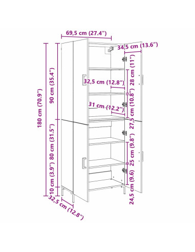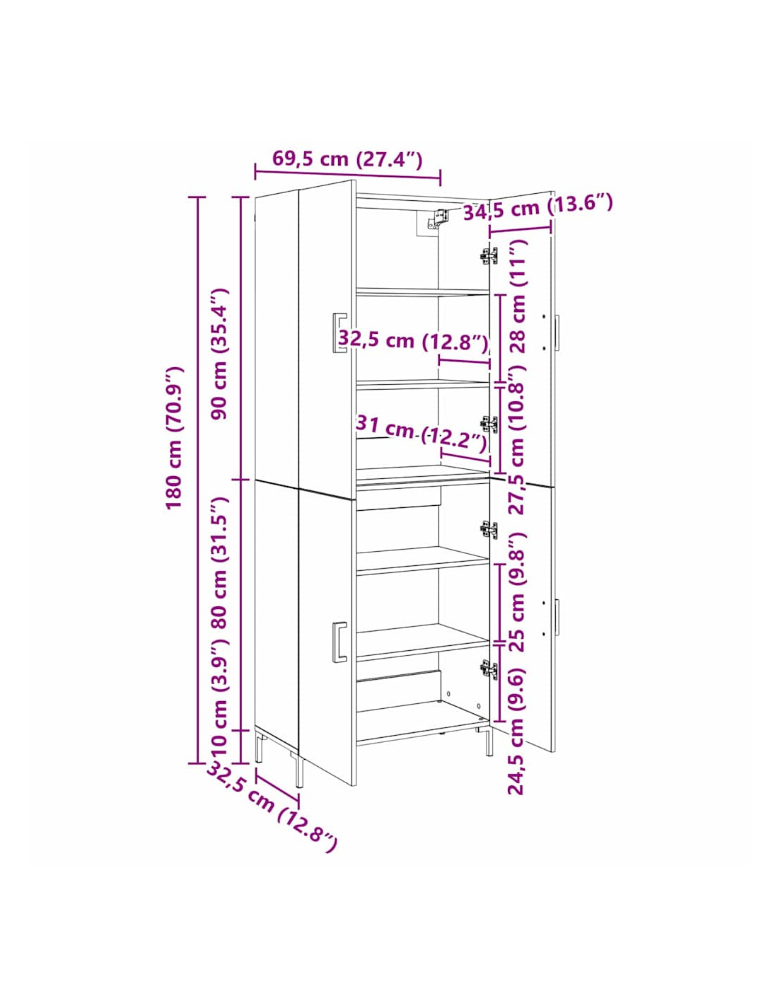 - Dimensioni complessive: 69.5 x 34 x 180 cm (L x P x A)