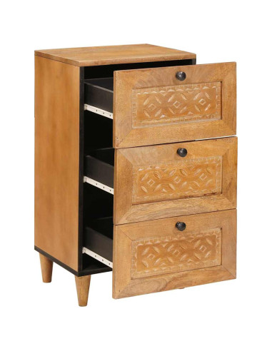 - Qualità del Materiale Questo sideboard è fatto in legno massello di mango e legno ingegnerizzato. Questa combinazione lo rende duraturo e alla moda, mantenendo un bel look nel tempo. Ogni pezzo ha venature e texture uniche che aggiungono carattere senza rinunciare alla robustezza, rendendolo il punto focale di qualsiasi stanza.