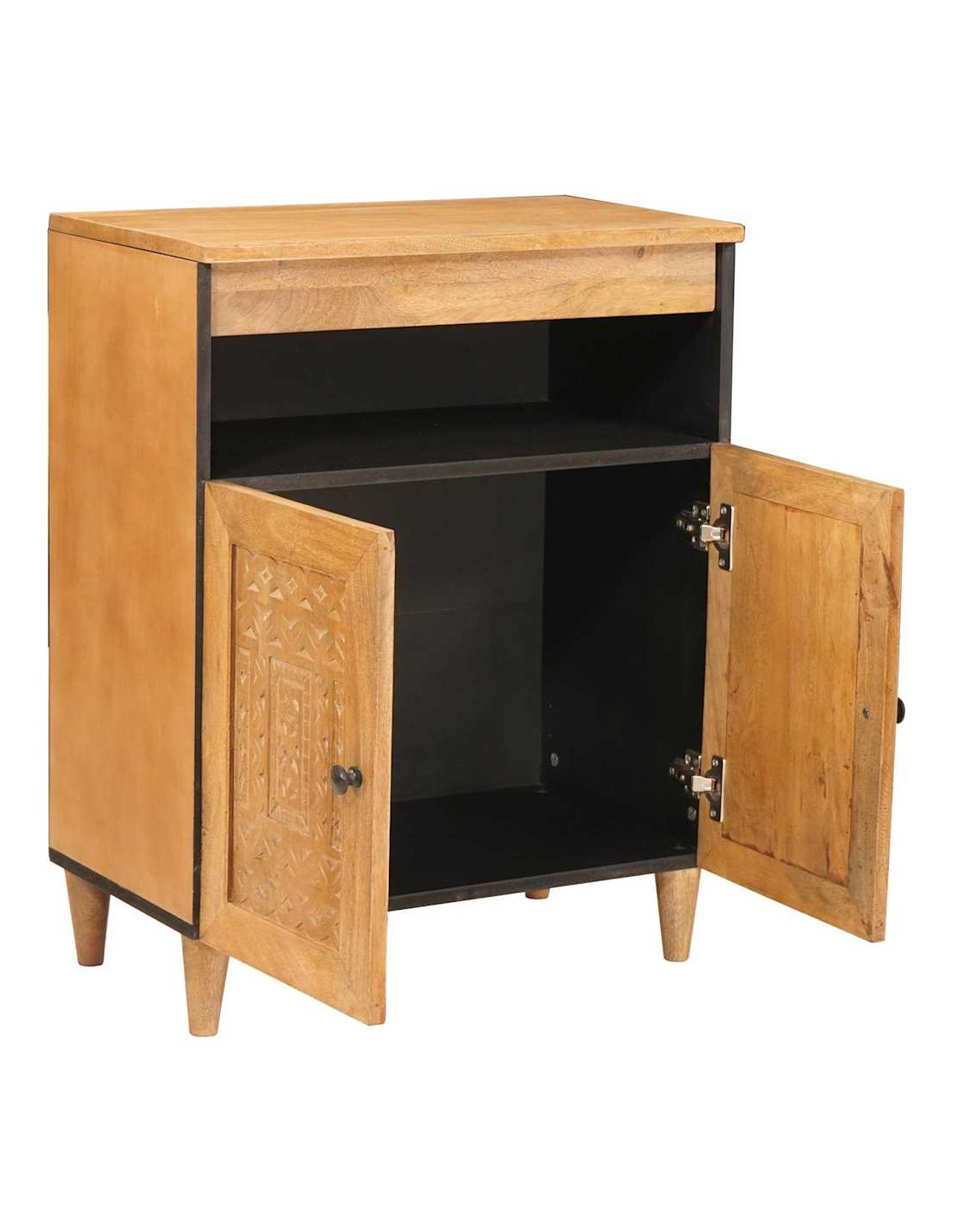 - Materiali Durevoli: Questo mobile è fatto di legno massello di mango, conosciuto per la sua resistenza e bellezza. Il legno ingegnerizzato aumenta la sua durata, così rimane bello a lungo.