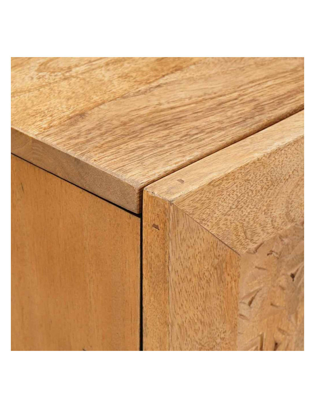 - Materiali: Realizzato in legno di mango massello di alta qualità, questo sideboard mette in mostra la venatura e la texture naturale, portando un'atmosfera calda e organica nel tuo spazio. Il legno ingegnerizzato aggiunge stabilità e resistenza ai cambiamenti climatici, facendolo una scelta solida per qualsiasi casa.