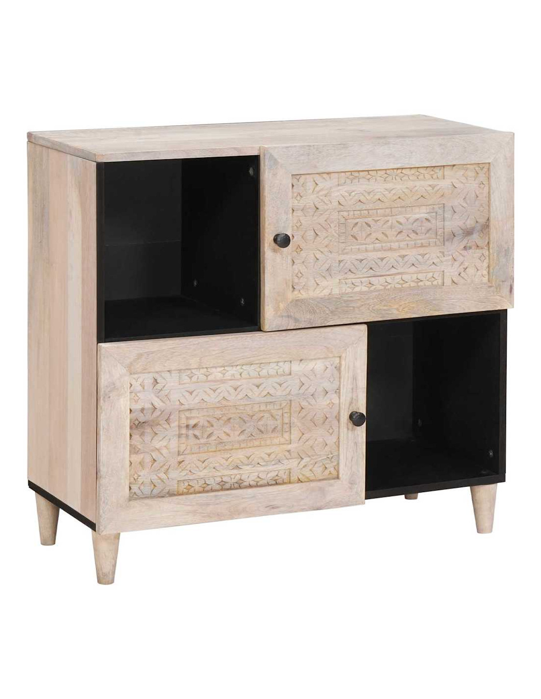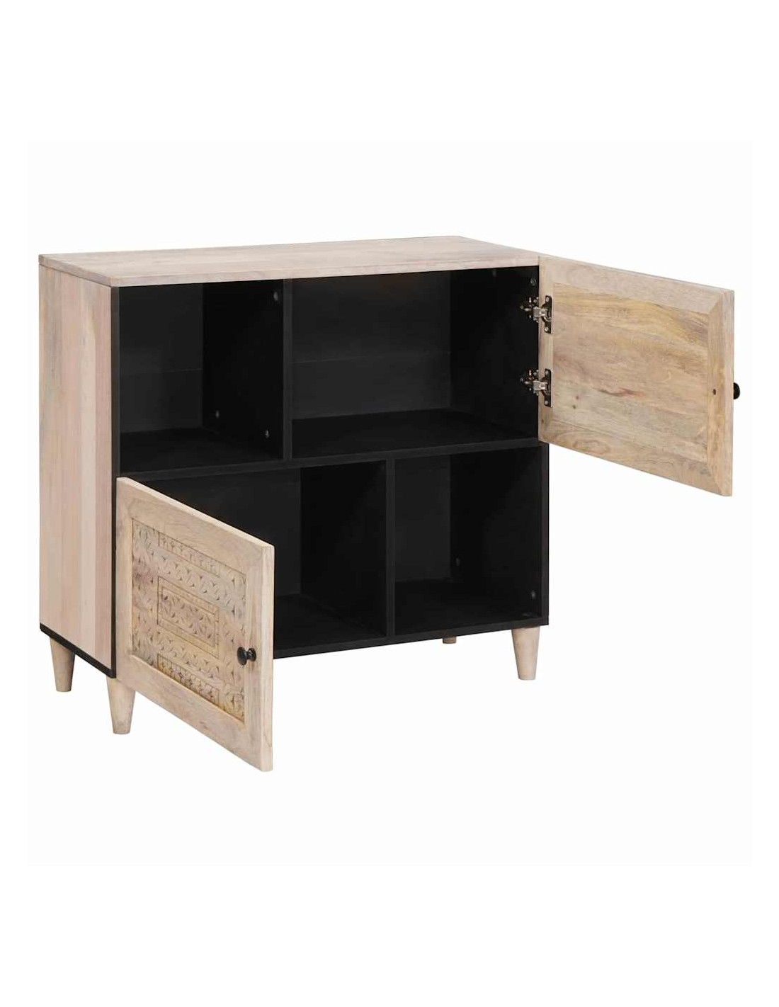 - Materiali: Questo sideboard è fatto di legno massello di mango di alta qualità, noto per la sua resistenza e le belle venature. È una scelta durevole e attraente per chi ama l'eleganza naturale e i mobili resistenti.