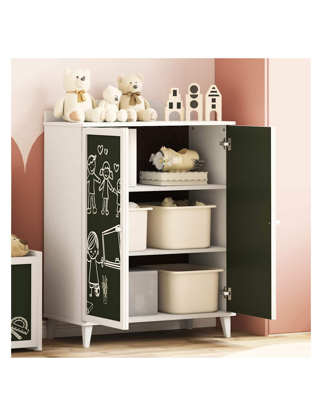 - Superficie in Lavagna Liscia: La superficie in lavagna dell'armadio è sia decorativa che pratica, permettendoti di personalizzarlo con messaggi o disegni. Questo particolare non solo rende gli spazi più interessanti, ma invita anche alla creatività.