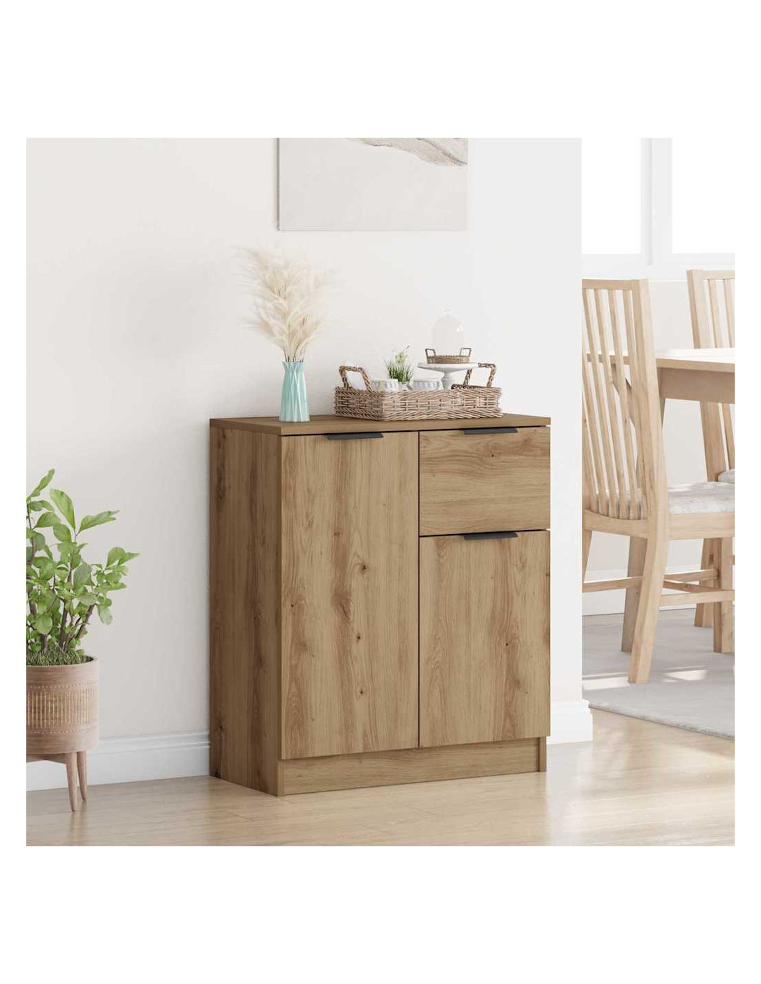 Questa credenza in legno ingegnerizzato moderno porta un tocco di classe senza tempo in qualsiasi soggiorno o sala da pranzo. Con il suo aspetto rustico e il fascino moderno, ha una forma rettangolare robusta che si adatta bene a vari stili di decorazione, garantendo abbastanza spazio per i tuoi oggetti essenziali.