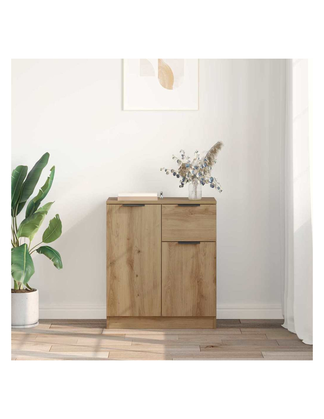 - Legno ingegnerizzato: La credenza è fatta di legno ingegnerizzato di qualità, robusta e resistente. La superficie opaca le dà un tocco sofisticato e una sensazione accogliente alla stanza senza essere invadente.