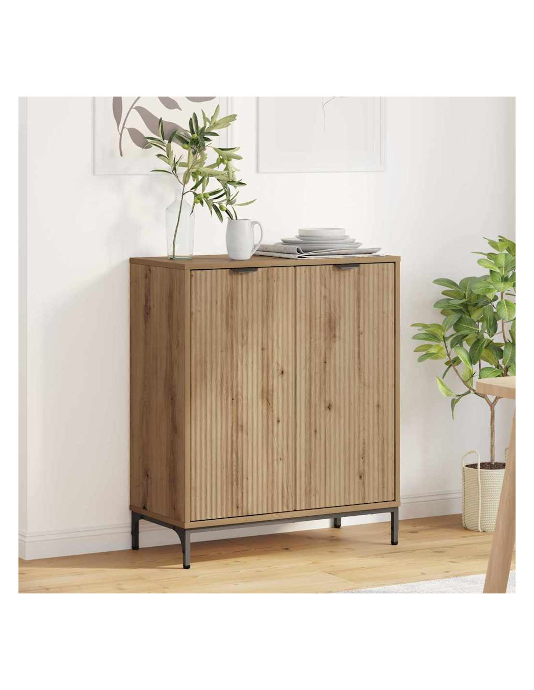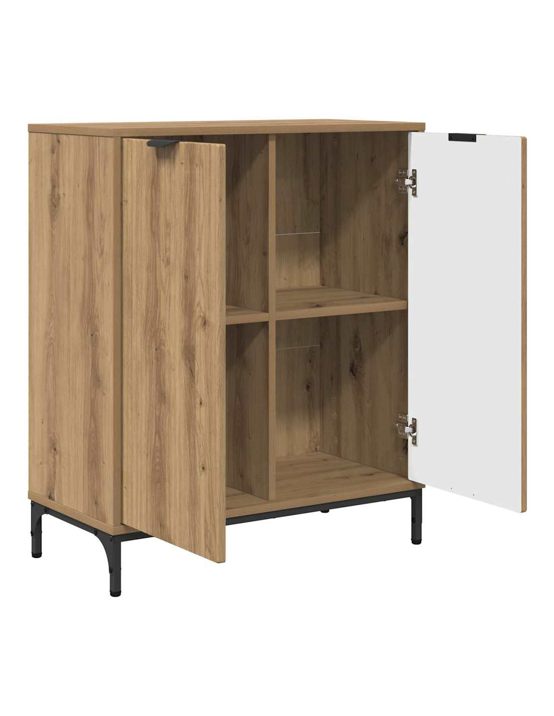 - Accesso con Porte a Cerniera: Il buffet ha pratiche porte a cerniera che si aprono senza problemi, grazie a comodi maniglioni. Queste porte ti danno facile accesso a tanto spazio di stoccaggio, mantenendo tutto ordinato e nascosto.
