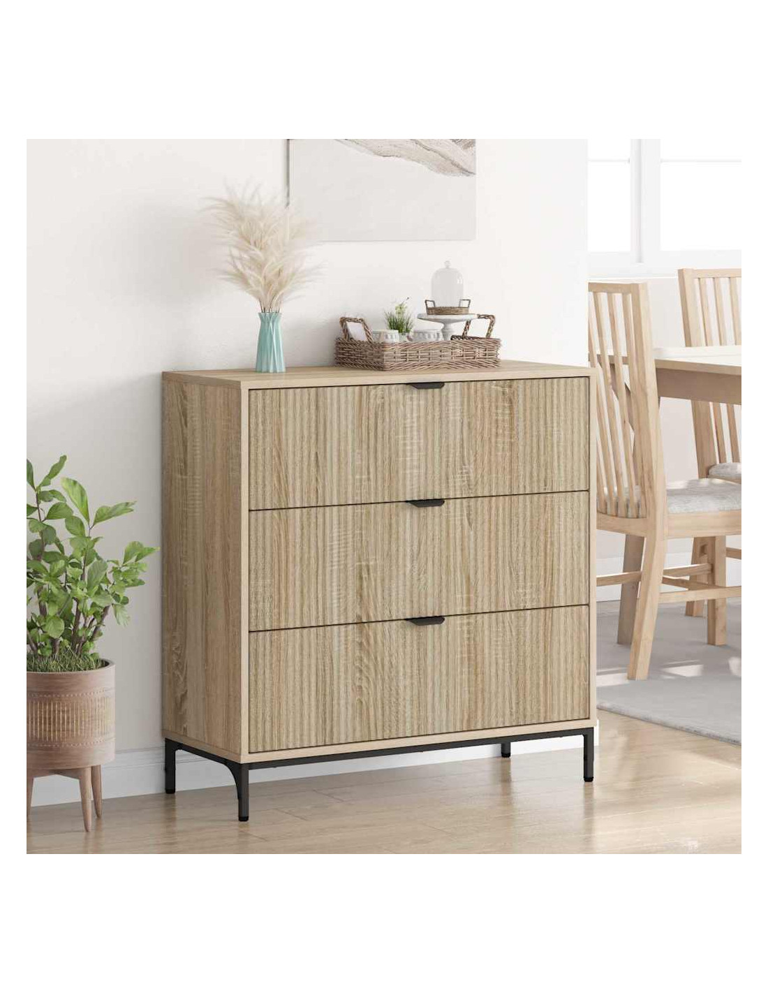 - Struttura in Legno Ingegnerizzato Questo buffet è fatto di legno ingegnerizzato di alta qualità, che unisce robustezza e stile moderno. È resistente, quindi mantiene la sua bella finitura anche con l'uso quotidiano, promettendo anni di utilizzo senza perdere il suo appeal. La costruzione solida regge nonostante la vita di famiglia mantenendosi impeccabile.