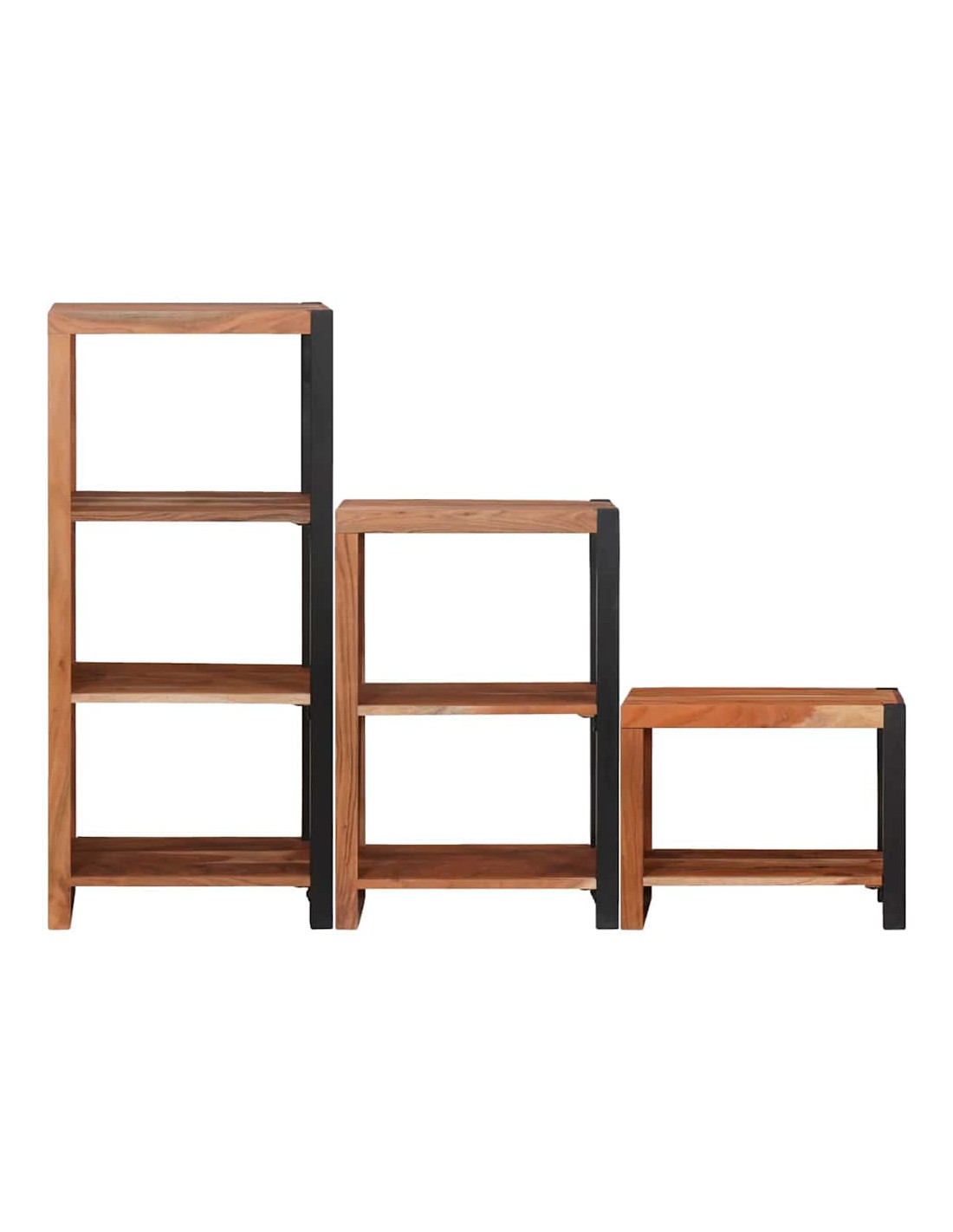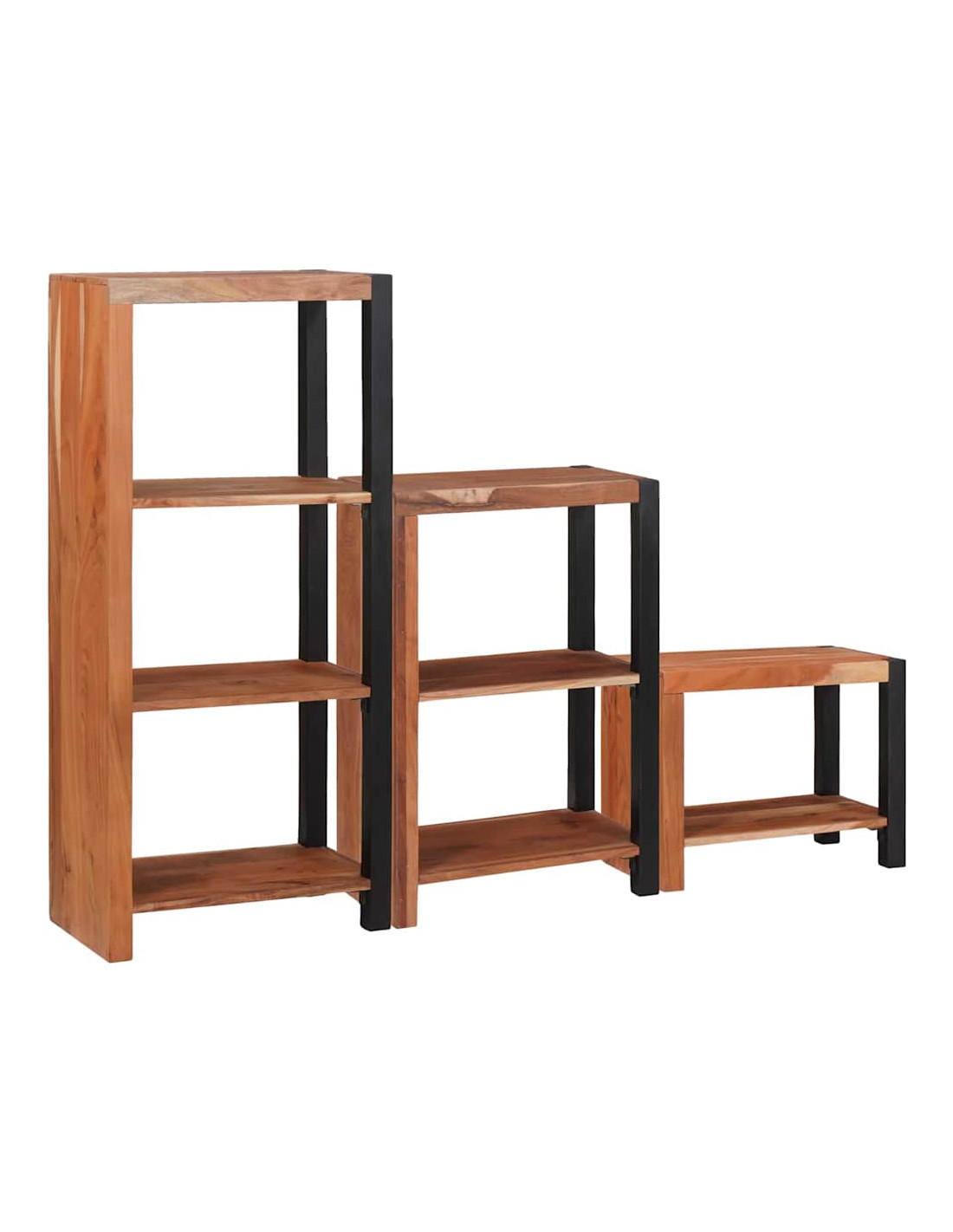 - Ripiani Robusti Grazie ai ripiani in legno massello di acacia, questa libreria offre tanto spazio. Ogni ripiano può contenere vari oggetti, dai libri alle decorazioni, mantenendo tutto in ordine nel tuo spazio.