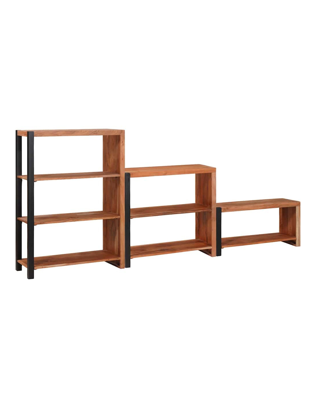 - Ripiani Robusti Grazie ai ripiani in legno massello di acacia, questa libreria offre tanto spazio. Ogni ripiano può contenere vari oggetti, dai libri alle decorazioni, mantenendo tutto in ordine nel tuo spazio.