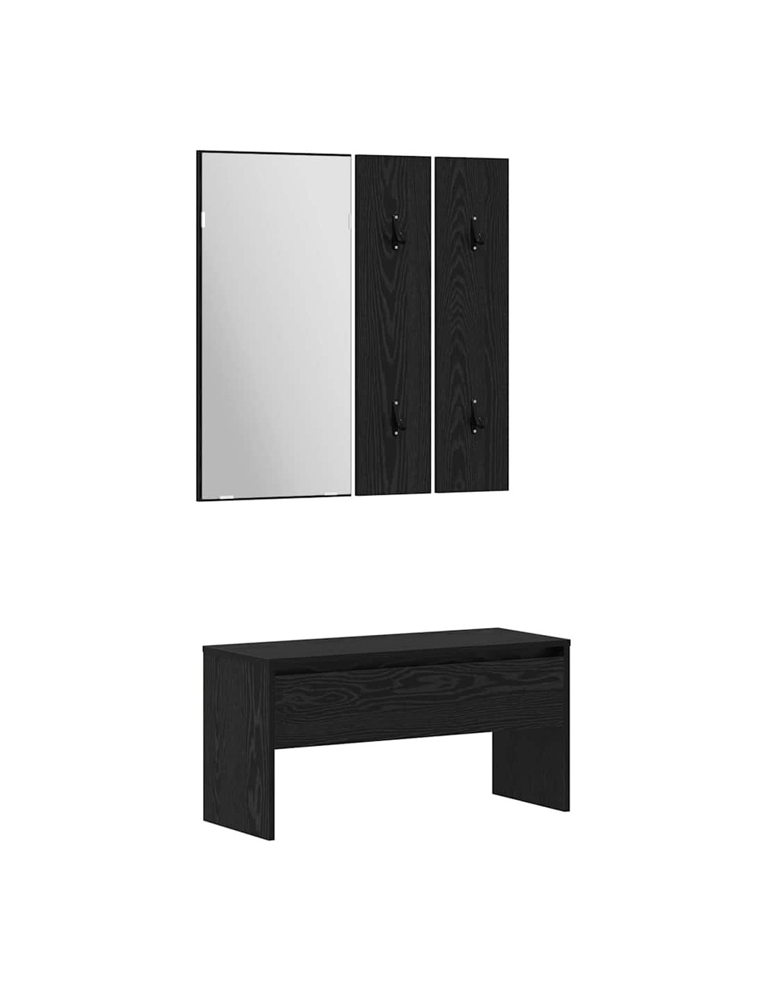 - Componenti Inclusi: Il set include due pannelli per attaccapanni che uniscono praticità e bellezza per tenere giacche e cappelli in ordine. Lo specchio ha una superficie riflettente classica, perfetta per controlli veloci prima di uscire. Completa il tutto un cassetto per riporre oggetti e un elegante vaso, ideale per decorazioni stagionali o piante.
