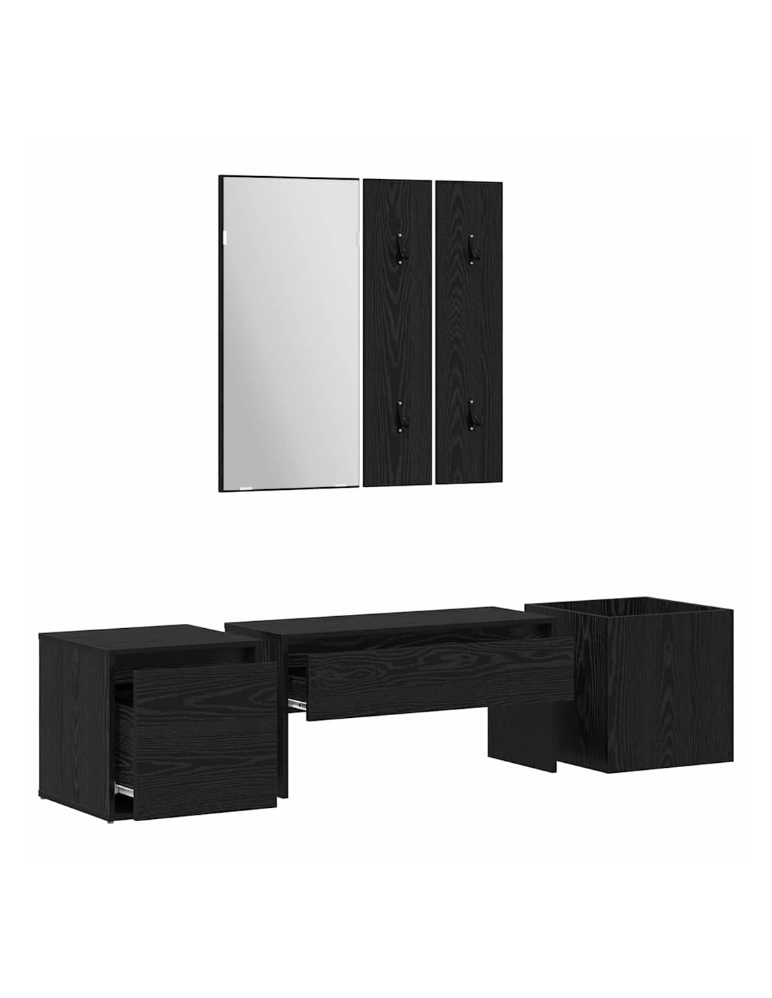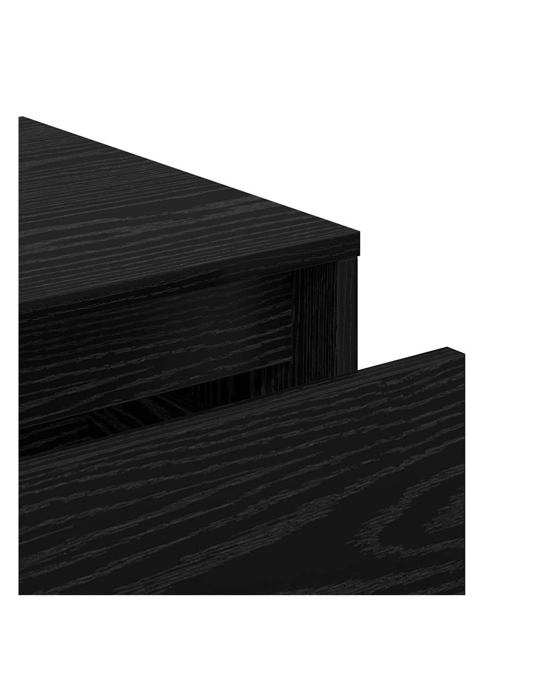 - Materiali: Questo set è realizzato in legno ingegnerizzato, noto per resistenza e durata. La finitura in rovere nero gli dà un aspetto elegante che si adatta a vari stili di arredamento. Il legno ingegnerizzato assicura che i pezzi mantengano il loro aspetto nel tempo, offrendo robustezza per l'uso quotidiano.