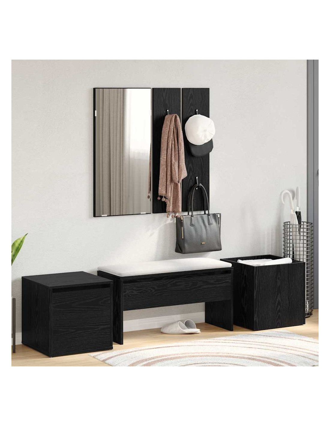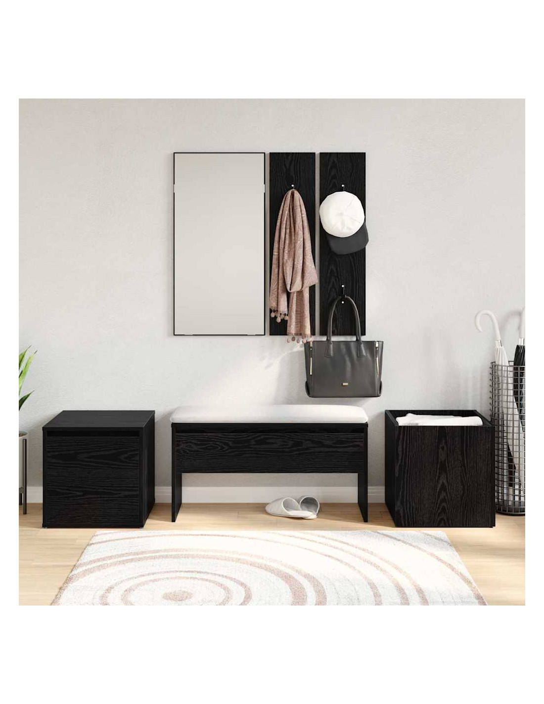 Questo set di mobili per hall in legno è un esempio di design contemporaneo, che unisce facilmente stile e praticità. Progettato per migliorare l'aspetto di qualsiasi spazio, il set ha una forma rettangolare che richiama un look moderno e minimalista, adatto sia agli interni urbani che a quelli suburbani. Include una panca per l'ingresso, uno specchio piatto per un tocco di classe, due pannelli per attaccapanni per abbigliamento essenziale, un vaso per un tocco di freschezza e un cassetto versatile per le necessità di stoccaggio. È perfetto per chi vuole un ingresso ordinato senza compromettere lo stile.