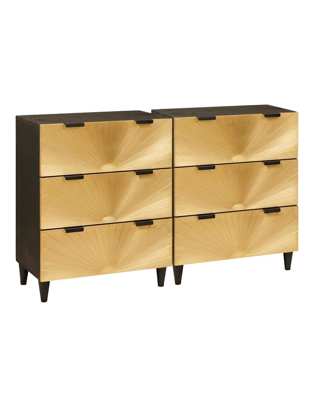 Il sideboard in legno massello è un pezzo che attira l'attenzione, mescolando funzionalità e design, perfetto per ravvivare qualsiasi soggiorno o sala da pranzo. Ispirato all'Art Deco, mostra un mix di stili geometrici e dettagli lussuosi, mentre i suoi colori nero e oro aggiungono un tocco di glamour. Non solo migliora gli spazi con il suo aspetto chic, ma offre anche una soluzione intelligente per riporre le tue cose, con tanti scomparti per stoviglie o oggetti da soggiorno, aiutandoti a mantenere tutto in ordine.