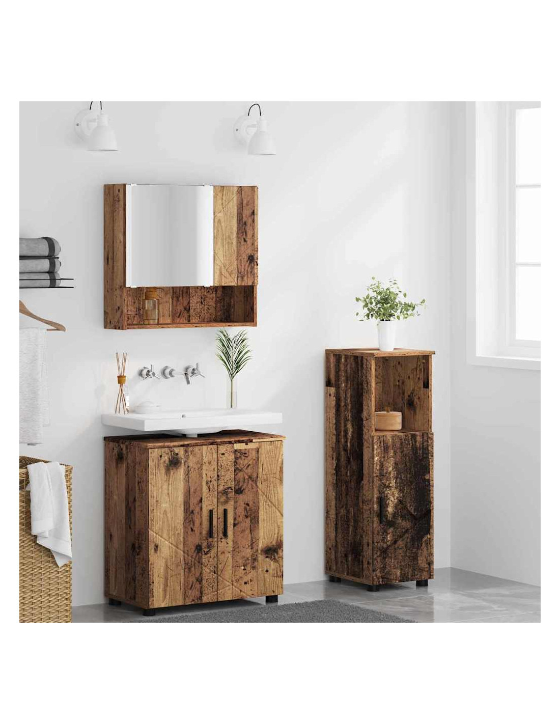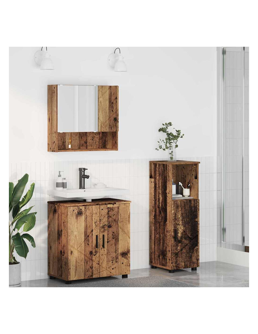 Guarda questo Set di Mobili da Bagno Moderno: una soluzione di stoccaggio elegante e pratica, perfetta per spazi moderni. Con le sue linee pulite e le forme nette, unisce stile e funzionalità come un campione. Puoi anche montarlo a parete per tenere liberi i pavimenti, ideale per bagni piccoli. Gli specchi incorporati offrono un bel mix di estetica e praticità mentre ti prepari.