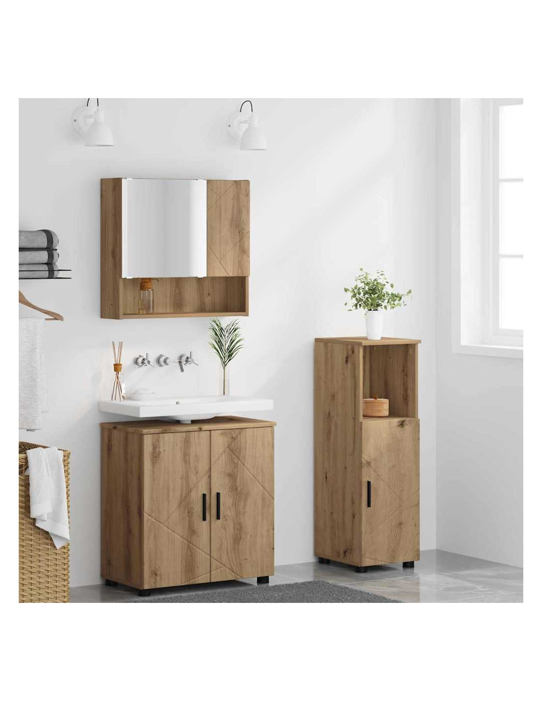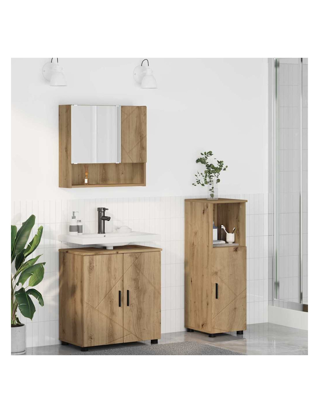 - Materiali di Qualità: Fatto in legno ingegnerizzato, questo set è robusto e bello. Resiste bene all'umidità dei bagni, quindi è una scelta intelligente a lungo termine che si adatta a diversi stili.