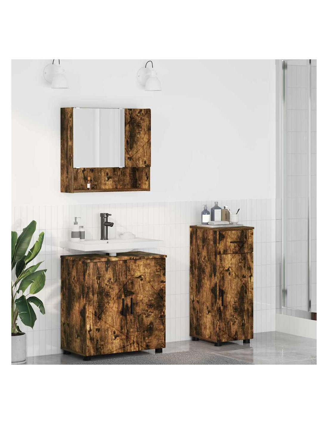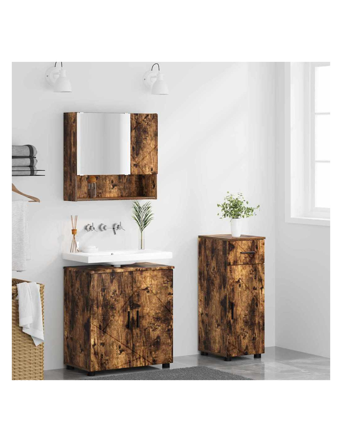 - Materiali: Questo set, interamente in legno ingegnerizzato, è pensato per durare e mantenere un aspetto gradevole col tempo. Il legno ingegnerizzato è resistente all'acqua e ha una finitura stilosa, ideale per i bagni.