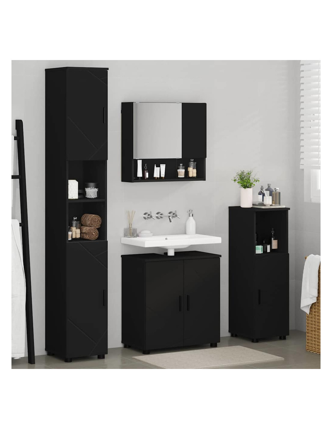 - Componenti inclusi: Il set contiene un armadietto per lavabo, un armadietto a specchio da parete e altri due armadietti da bagno. Ogni pezzo è progettato per sfruttare al massimo lo spazio di archiviazione, mantenendo un'aspetto ordinato.